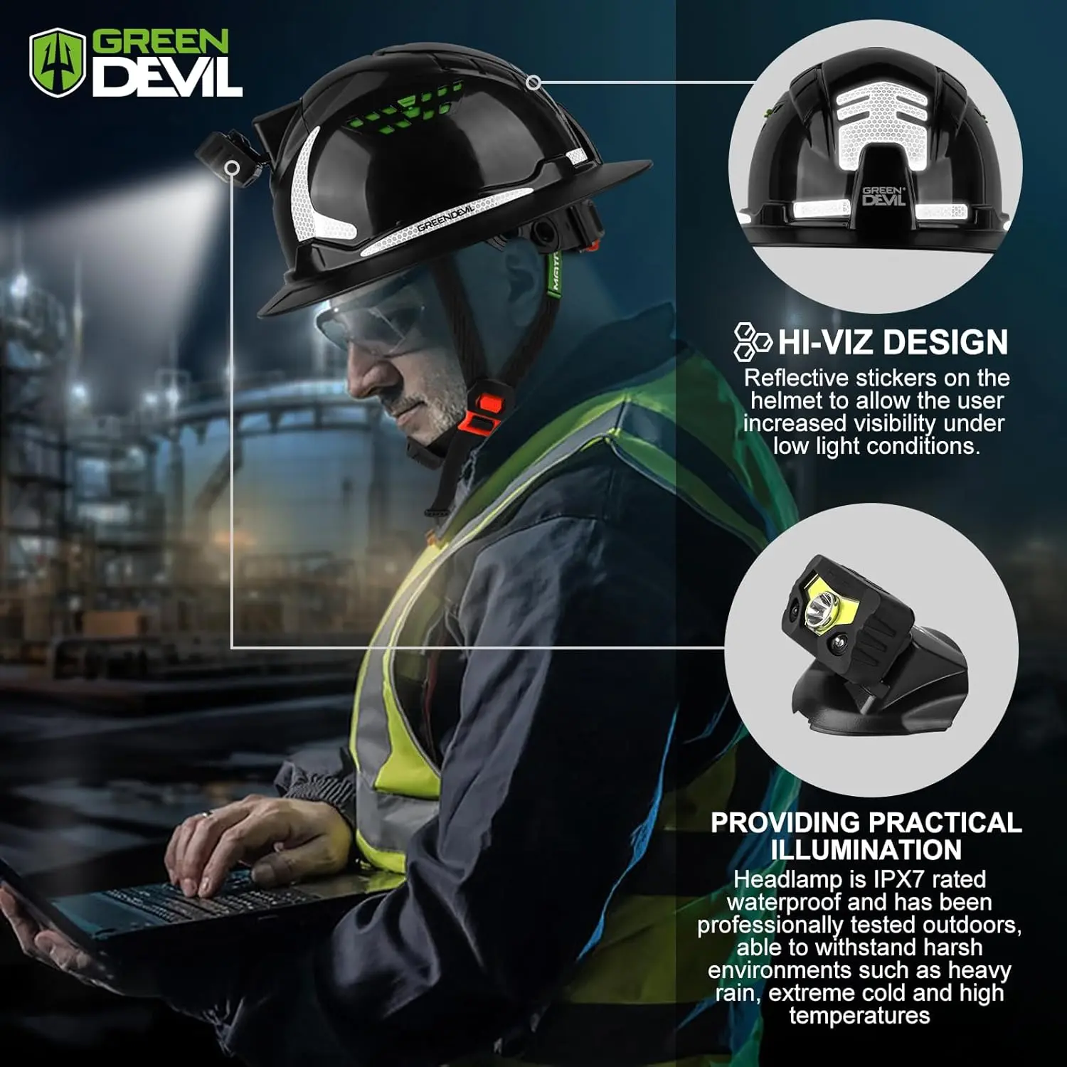 [JOB-SITE READY]: This heavy duty construction helmet meets ANSI Z89.1 Type 1 Class C standards, great for industrial, also ideal to be used in and around construction sites. If you have any problems about our full brim hard hat with light , reach out to us and we will make things right, FAST! Customer service will not be beat!