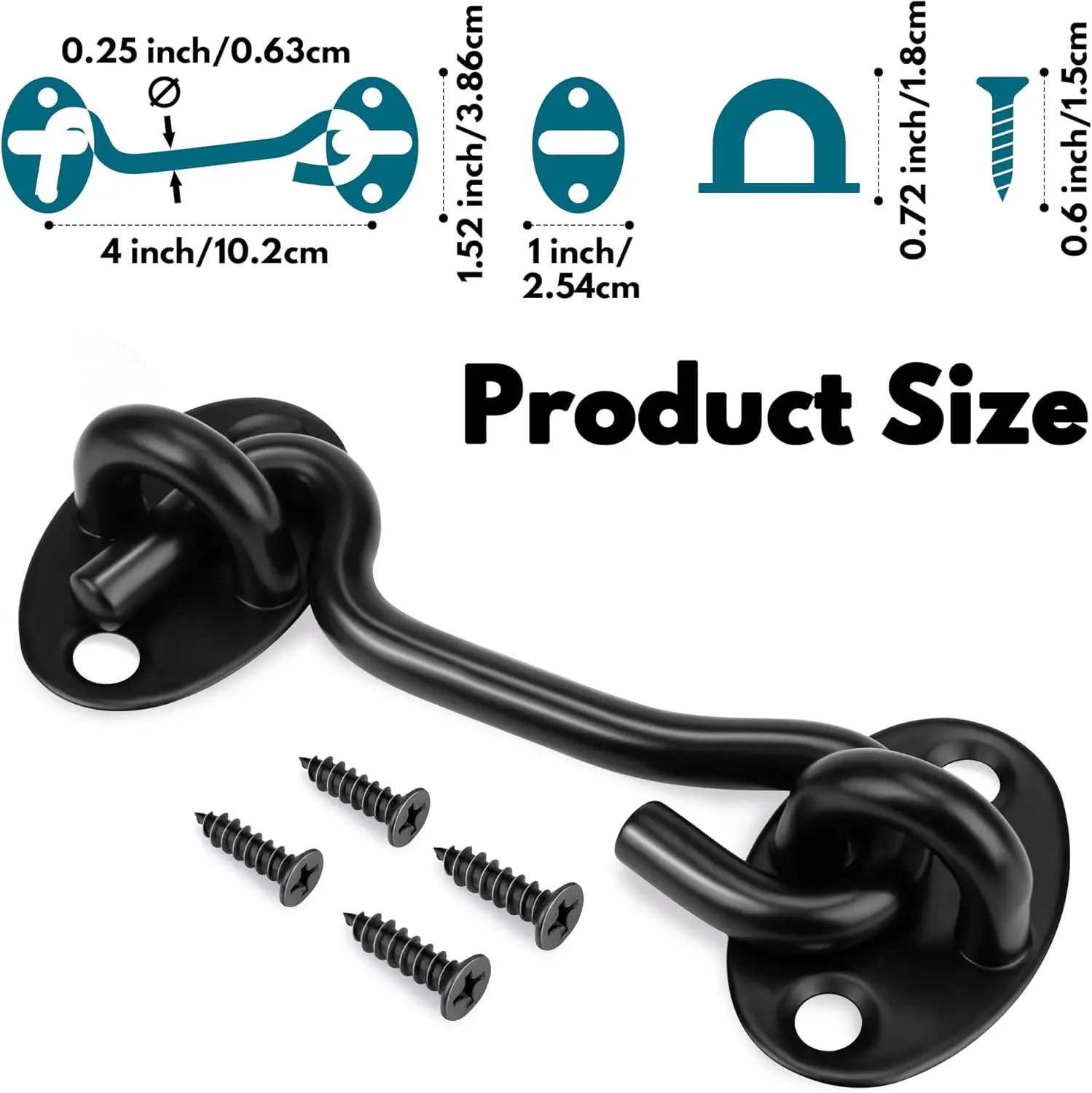 ·Size: 15 x 2.8 x 0.6cm/6" x 1.1" x 0.24"(L*W*T); Package includes: T: 1 x Cabin Hook, 4 x Screws