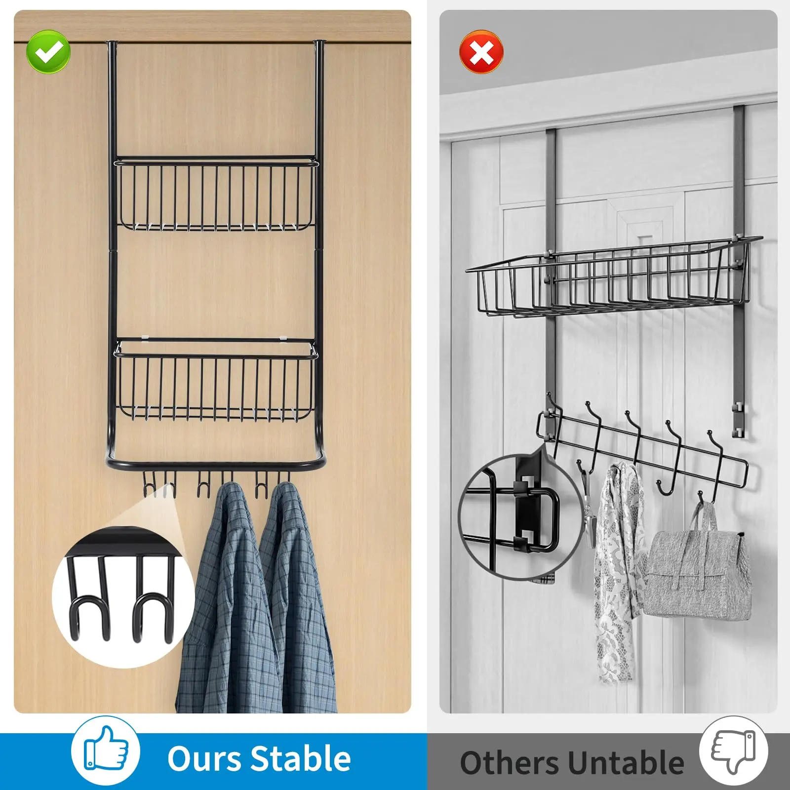 · Durable Metal Build & Sturdy Structure: Crafted from heavy-duty metal framework, this over-the-door organizer maintains its shape under weight, securely holding shampoos, conditioners, towels, and cleaning supplies without sagging or bending. The reinforced construction ensures long-lasting performance.