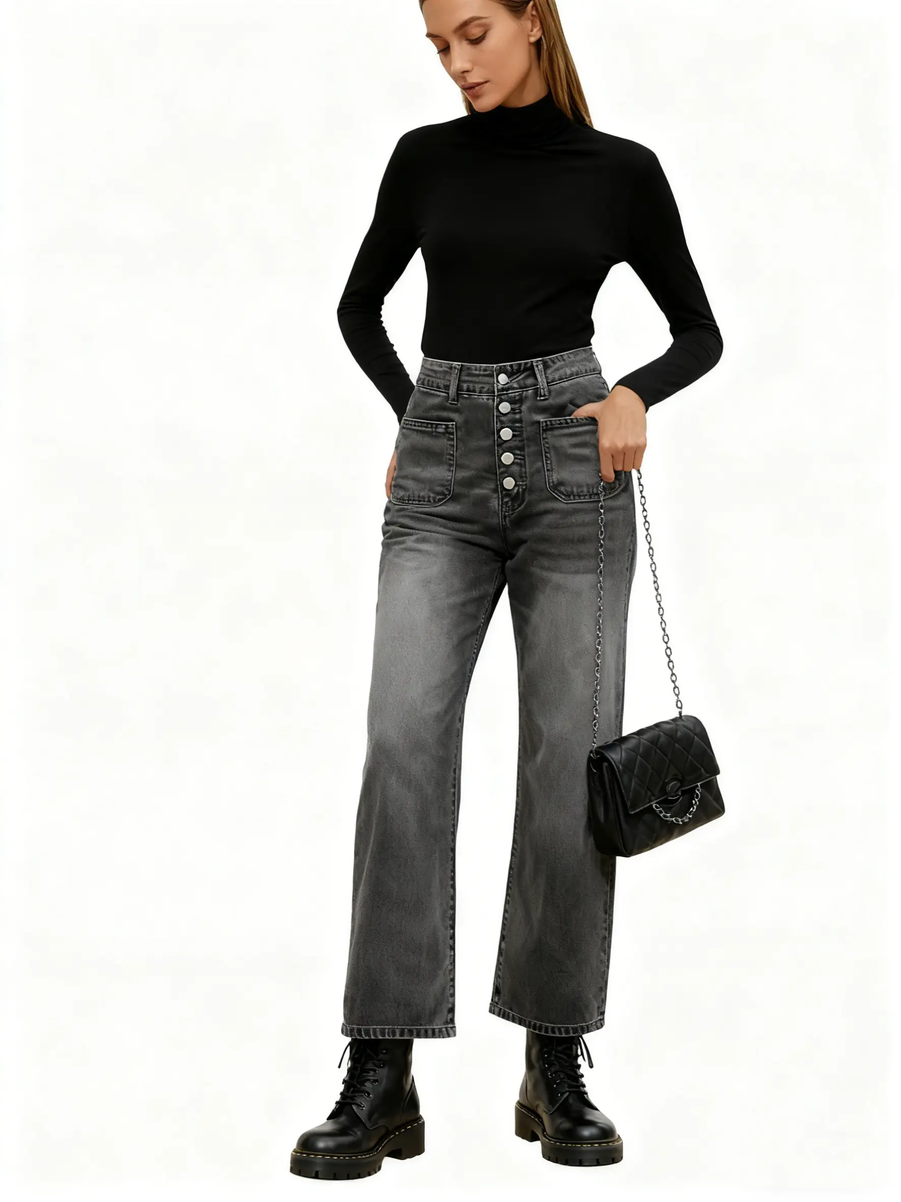 ETTELO Women Jeans Straight High Waisted Stretchy Trendy Pants with Pocket Jeans for Women