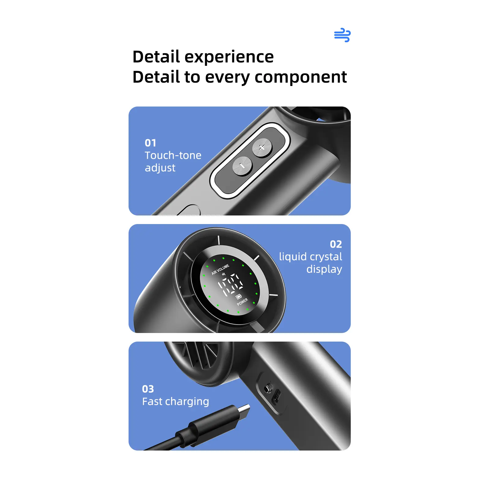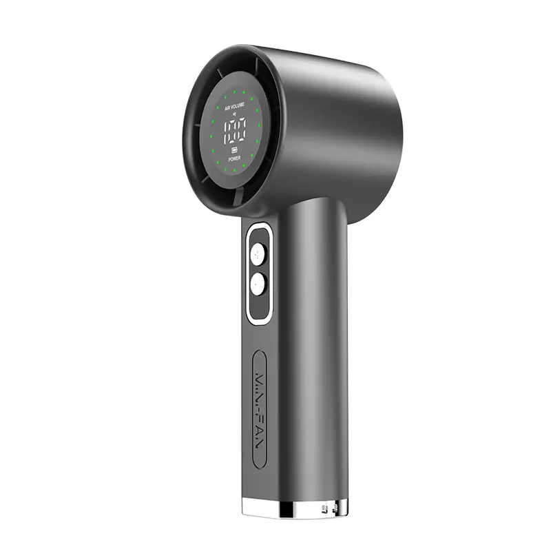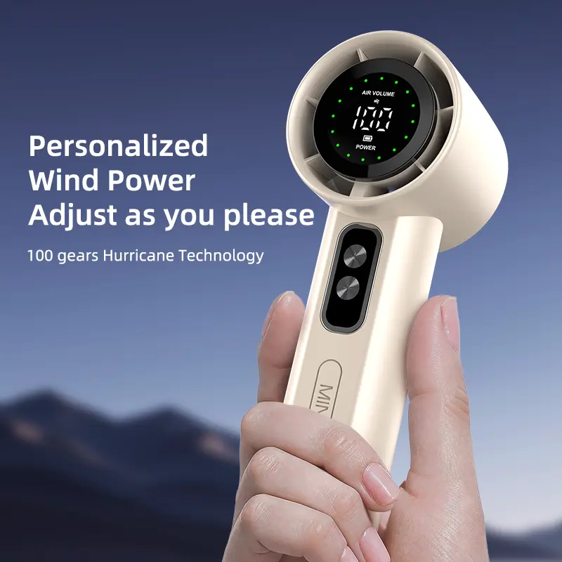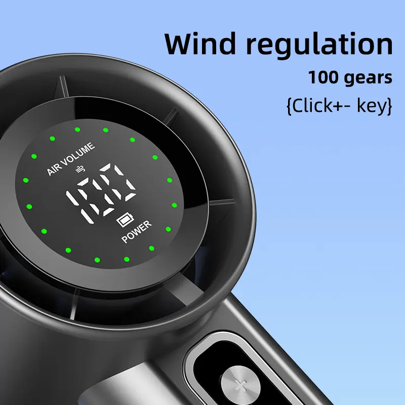 Designed for comfort and ease of use, the fan features a sleek, ergonomic handle that fits perfectly in your hand. Adjust the wind speed effortlessly with the responsive button controls; simply click the "+" or "-" keys to navigate through the 100 levels. Its compact and lightweight build makes it easy to carry around, fitting comfortably in your pocket or bag.