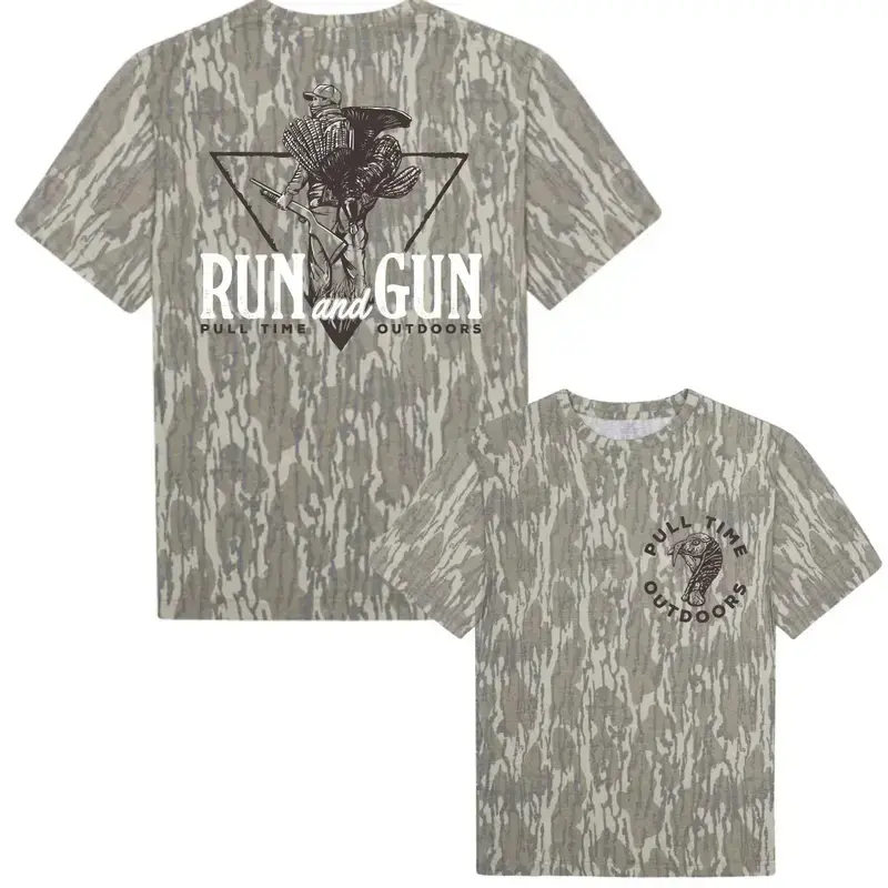 Pull Time Shirt | Run And Gun | Turkey Hunting Camo Shirt, Mossy Oak ORIGINAL BOTTOMLAND, Gift for Dad, Gift For him, 3D Camo Hunting T Shirt