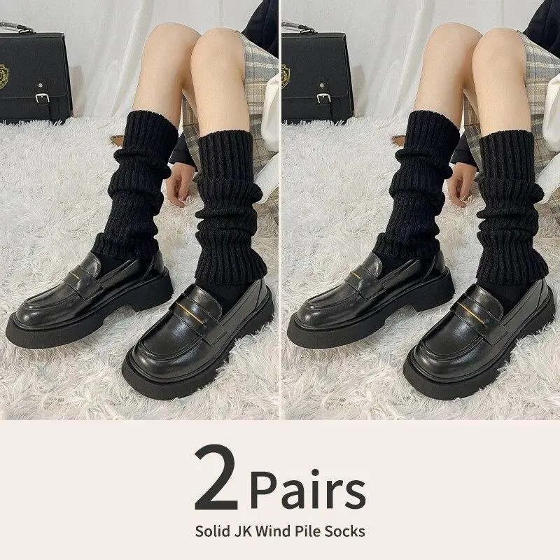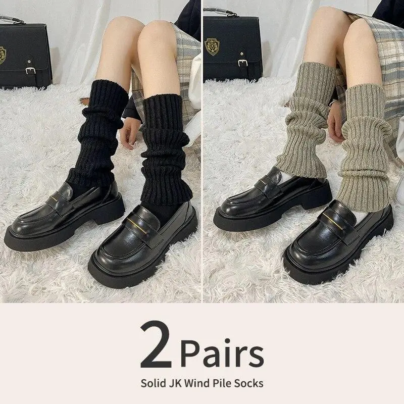 2 Pairs of Women's Four-season Autumn and Winter Solid Color Harajuku Fashion Wear Trendy Simple JK College Style Pile Socks