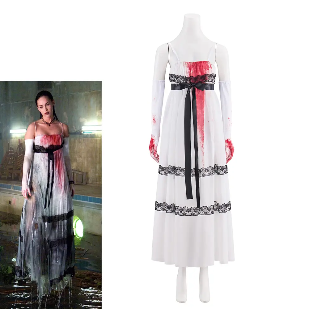 Channel Megan Fox's iconic look from Jennifer's Body with this show-stopping white dress!This figure-hugging costume perfectly recreates Jennifer Check's unforgettable style, featuring a sultry fitted silhouette and matching gloves for an authentic transformation.Made from high-quality stretch fabric, this outfit ensures both comfort and head-turning appeal for your darkest (and most stylish) nights out.