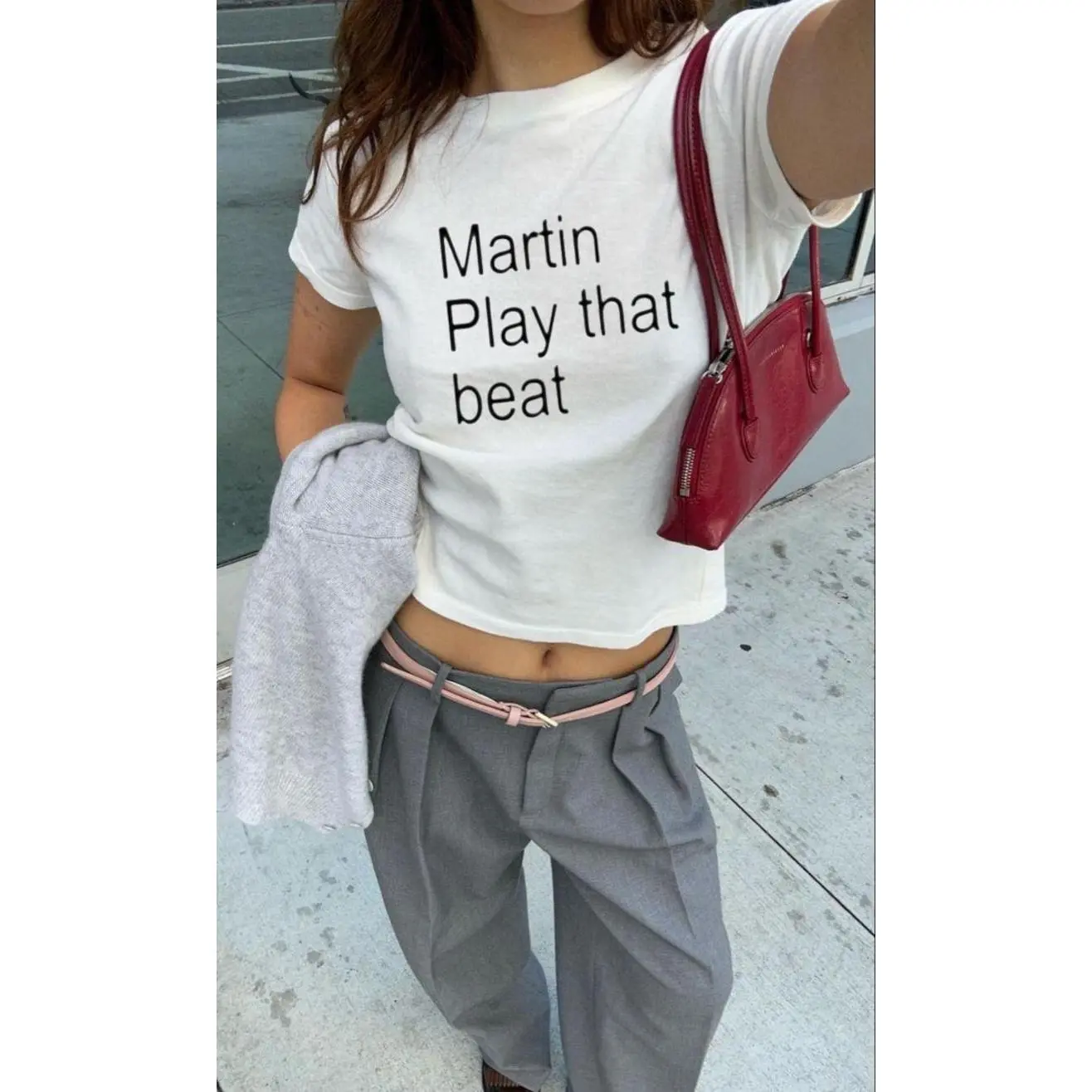 Martin Play That Beat Baby Tee – Y2K Graphic Shirt, Retro Streetwear Vibe, Kpop Inspired Crop Top