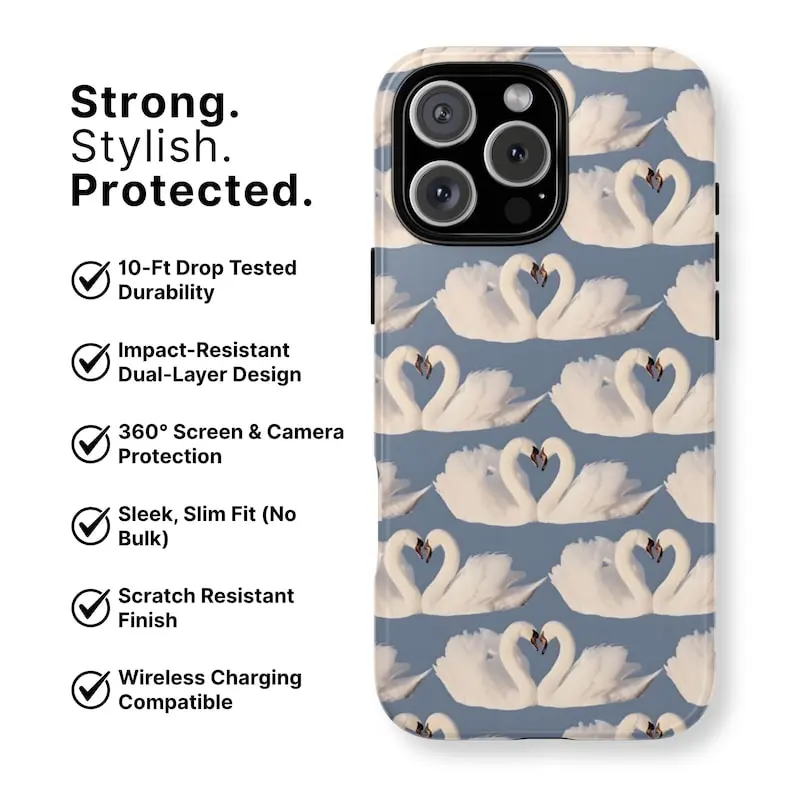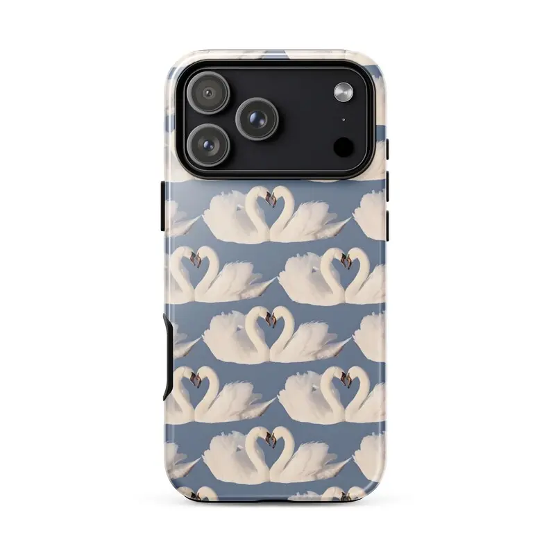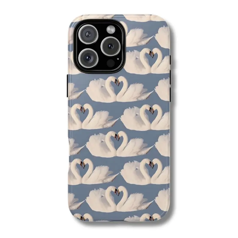 FOREVER SWANS Phone Case Cic Blue Swan Heart Pattern Girly Romantic Aesthetic Tough Case for iPhone Samsung Google Pixel Polycarbonate TPU Impact Resistant