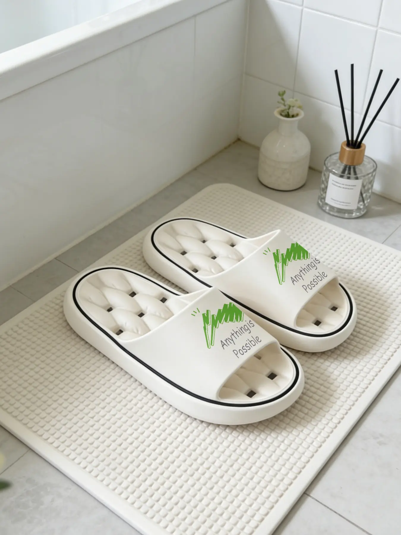 1 Pair Inspirational Slogan Bamboo Themed Printed Hollow Massage Thick Sole Slippers, Minimalist Fresh Style, Non-slip Soft Sole, Quick-dry for Bathroom, Indoor & Outdoor Dual-use, Open Toe Slides, Bathroom Casual Slippers
