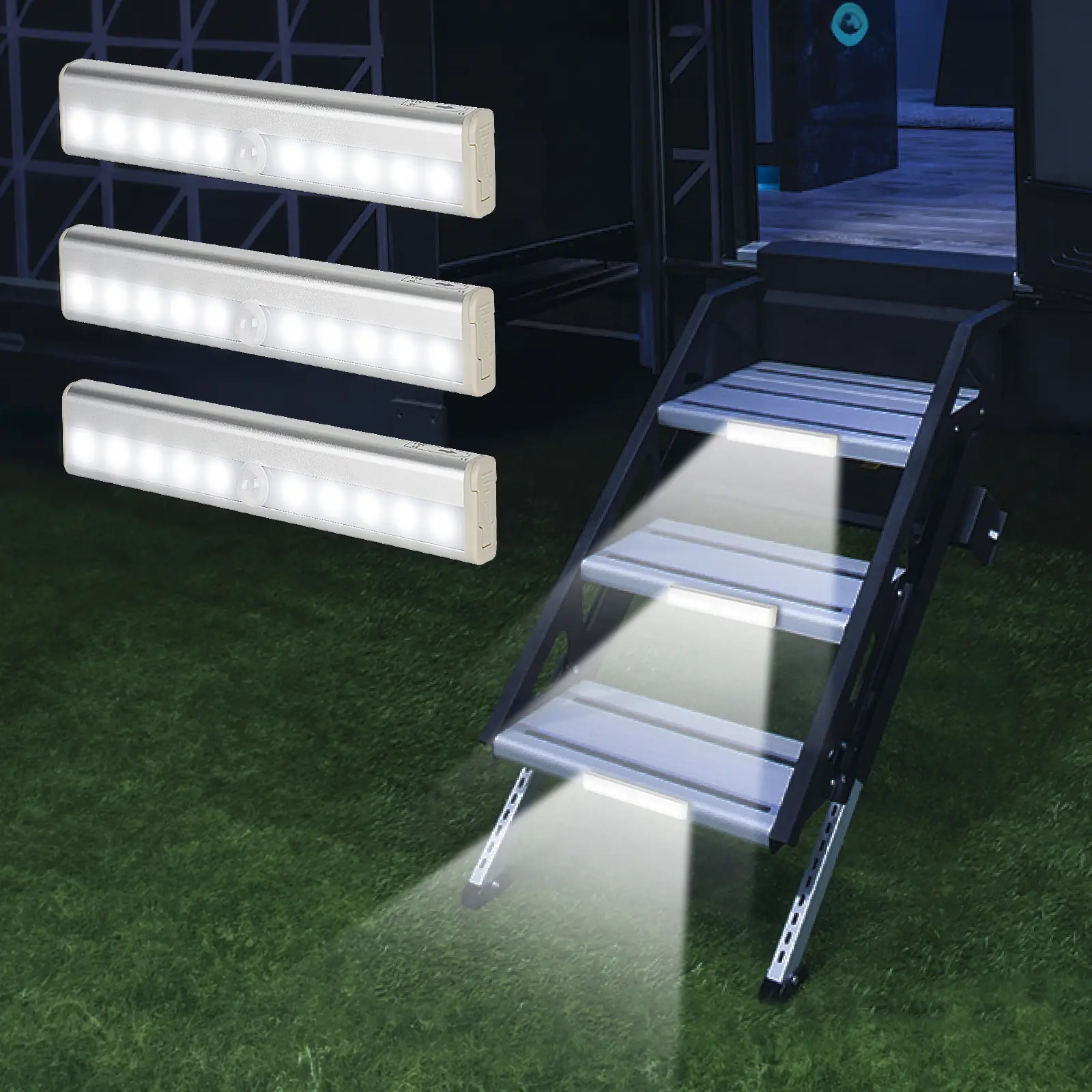 ·Bright and Eye Friendly: Our camper step lights made with 10 high-quality LED beads, our magnetic motion sensor lights are super bright yet gentle on the eyes. They're perfect for a variety of places with different lighting needs, and can even be used as an emergency light thanks to their magnetic strip and battery operated design
