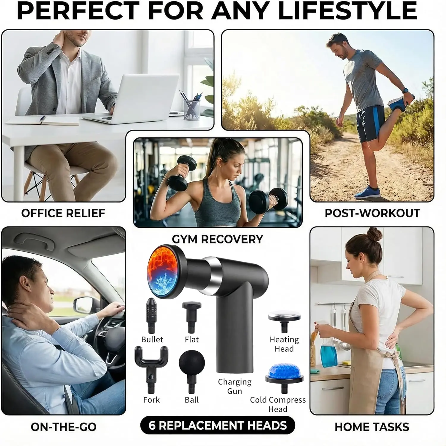 Transform your self-care routine with this versatile Deep Massage Gun. Perfect for back and body massage, it offers targeted pain relief. The percussion massager comes with 6 massage heads, ensuring a customized experience. Ideal as a Valentine's Day gift, it's a thoughtful choice for him or her. The black 2-in-1 design features detachable long and short handles for easy portability.