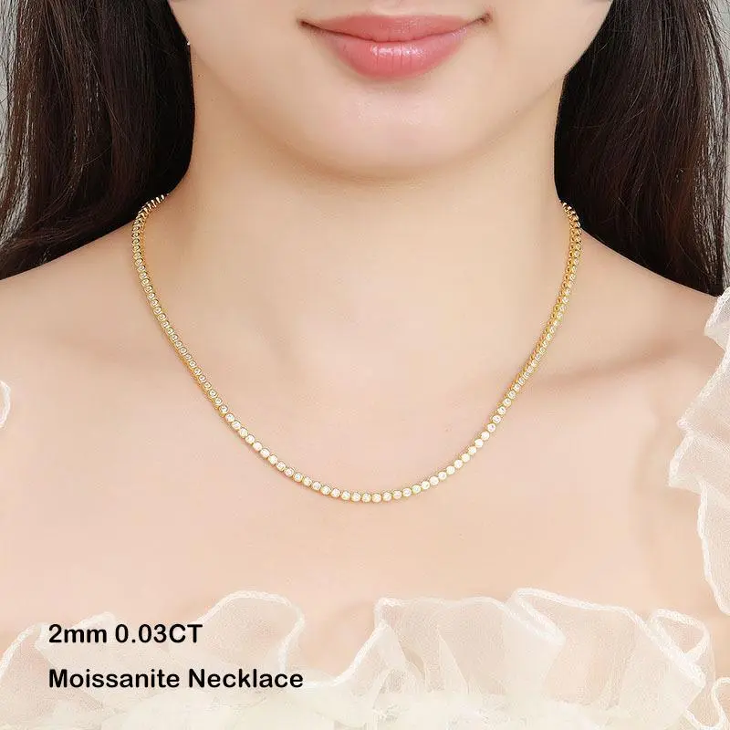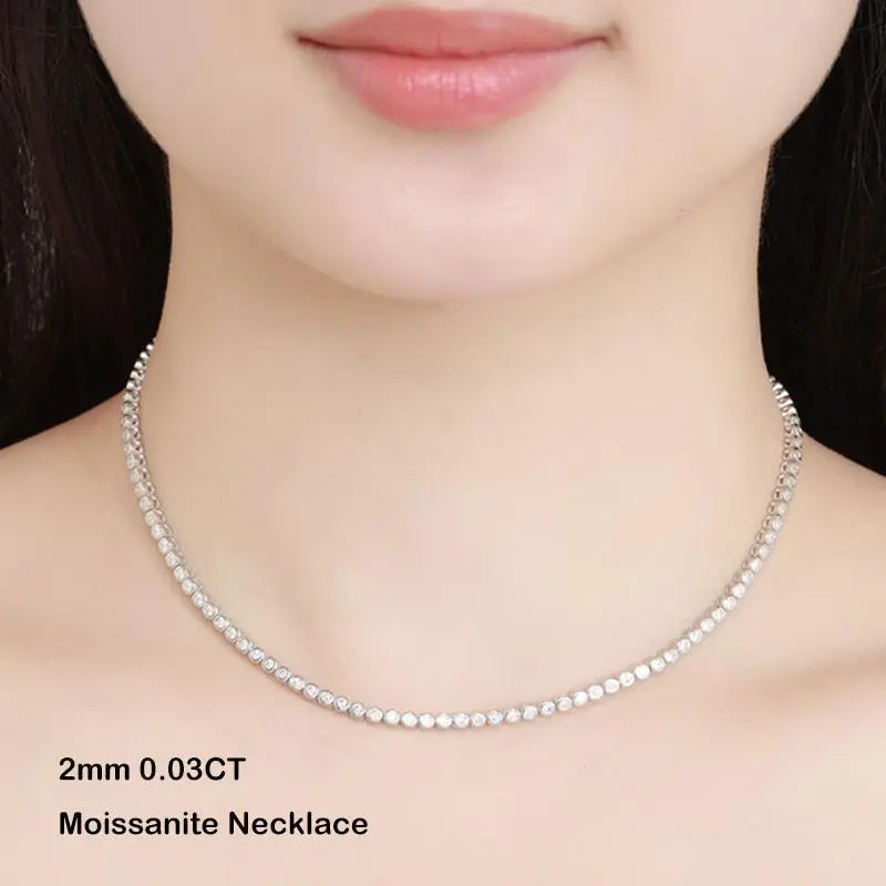 ESKEEM Moissanite Tennis Chain Necklace 925 Silver Iced Out VVS Pass Diamond Tester 2/3/4/5mm Tennis Chain Fine Jewelry
