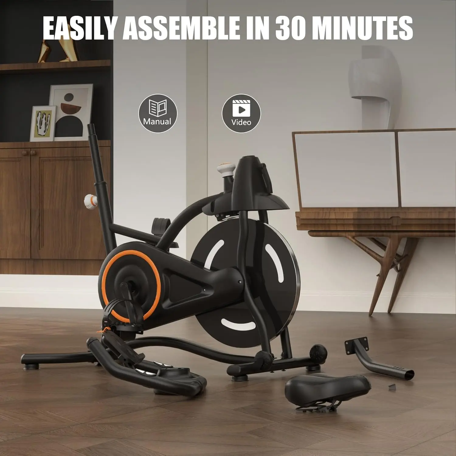 Sleek Design & Sturdy Structure: Our exercise bike for home features a high-strength steel frame that provides superior stability and support without the bulk of a traditional design.The reinforced steel structure delivers superior support while keeping the profile sleek and saving 30% more floor space.Perfect for apartments, small home gyms, or rooms where space is precious, without giving up stability.