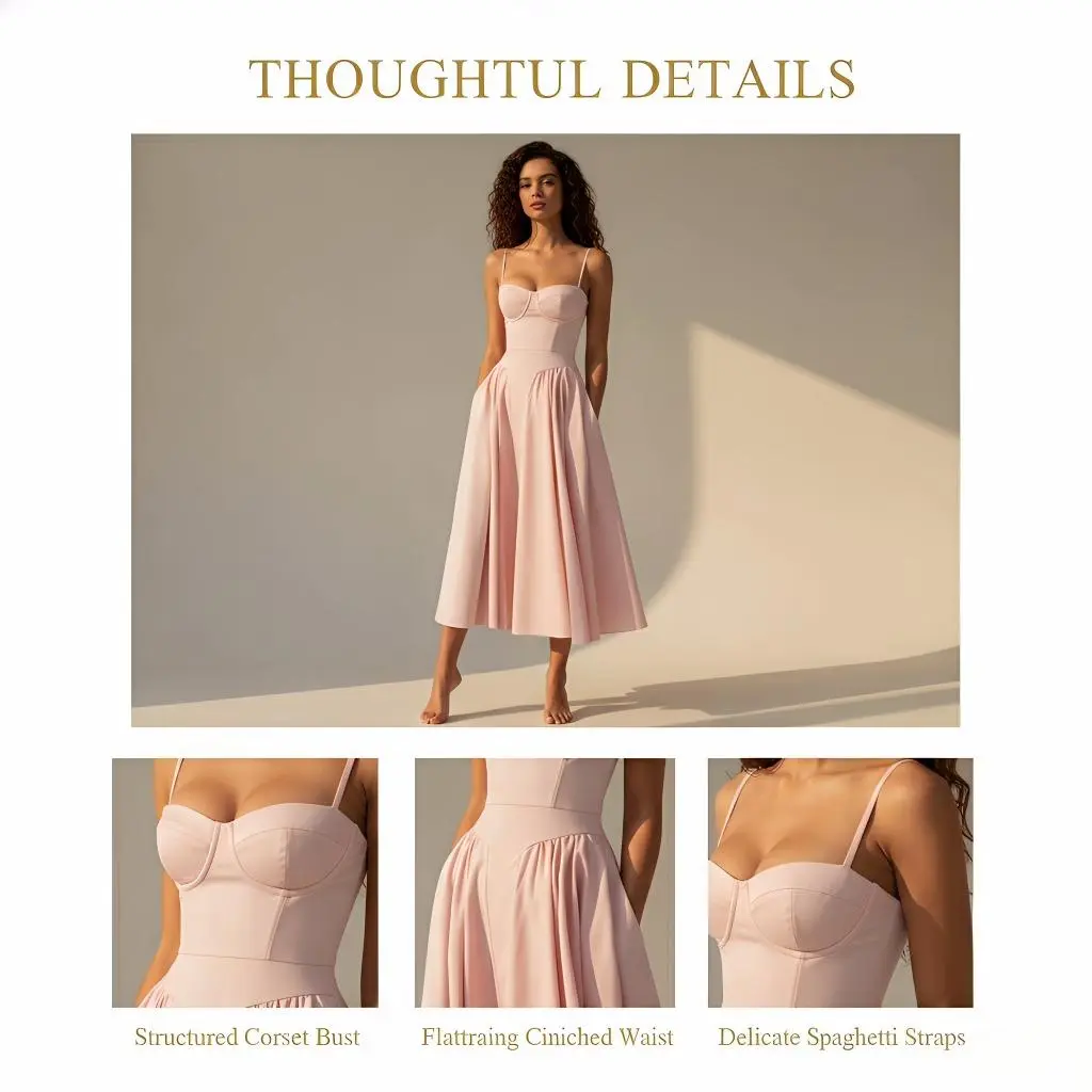 2026 beautiful women's clothing, new spring models, French retro court style solid color suspender dress