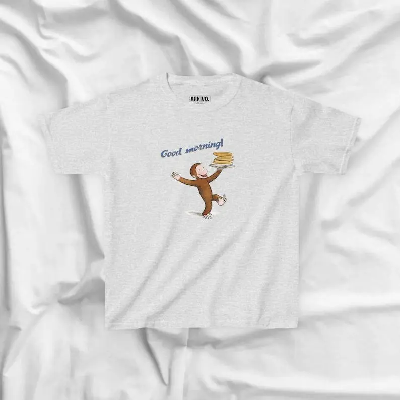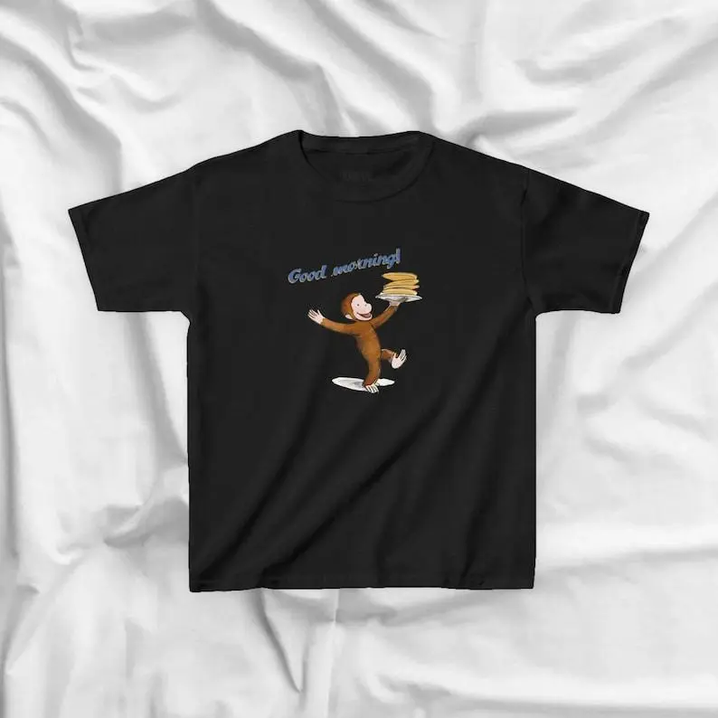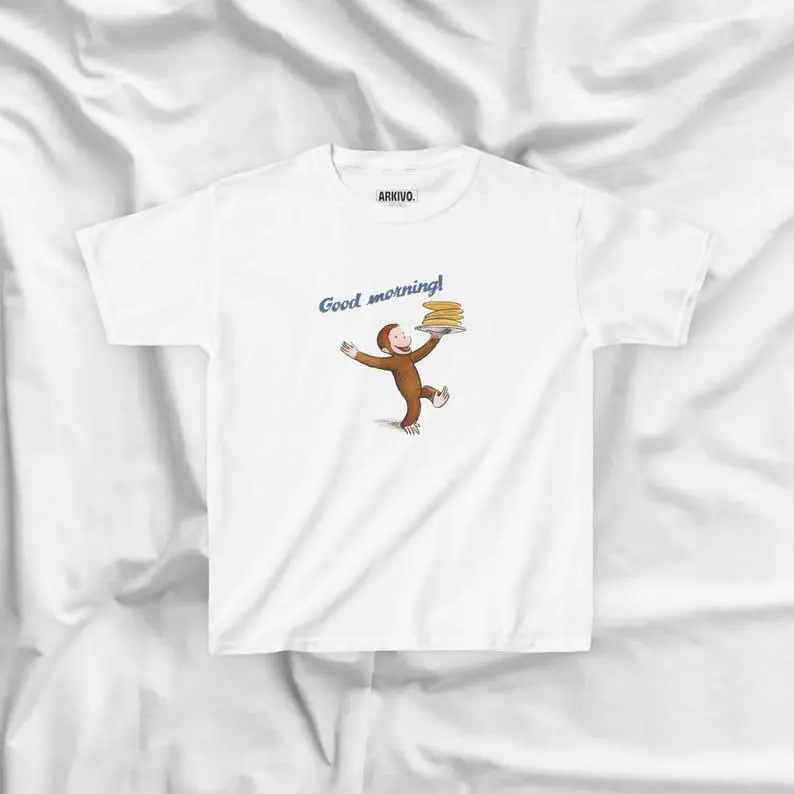 Y2K Curious George Aesthetic Baby Tee – Kids Cartoon Graphic Tee, Vintage Y2K Shirt, Pinterest Trendy Outfit