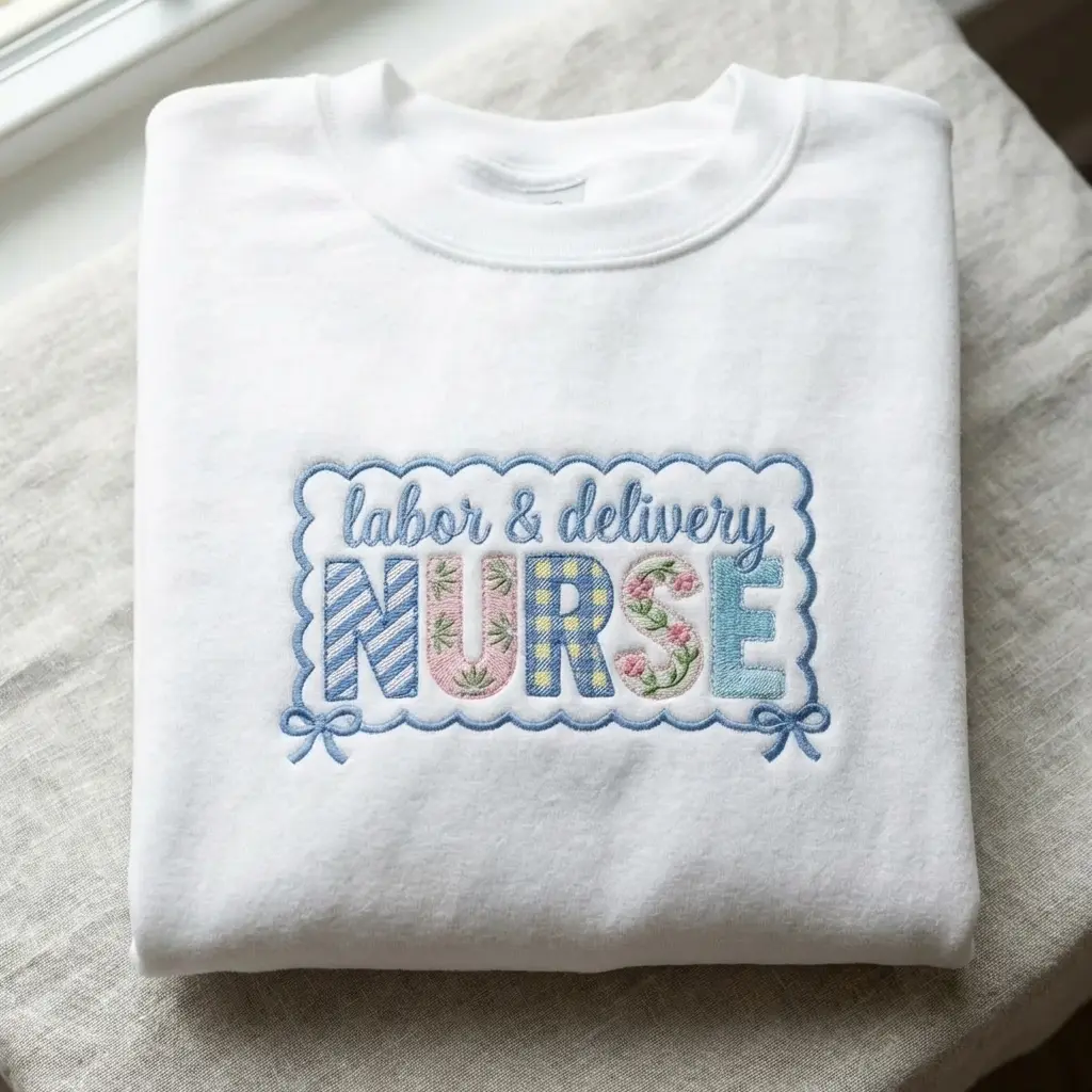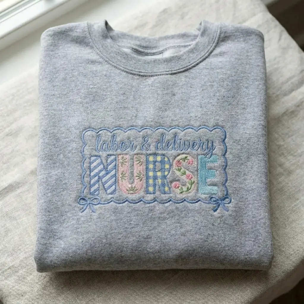 [MADE IN US] Labor and Delivery Nurse Embroidered Sweatshirt, Floral Patch Crewneck, OB Nurse Apparelinical