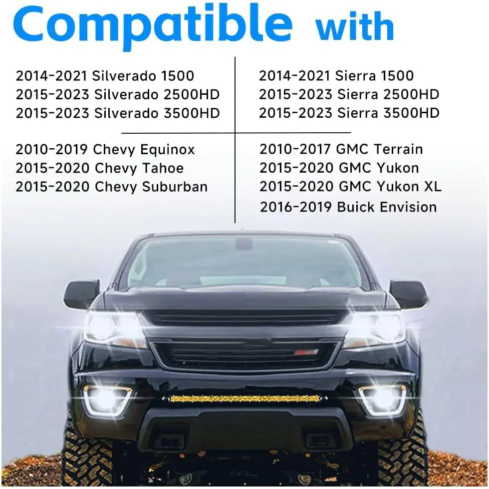 Compatible with: Our 6 high mod is deigned for 2015-2020 Chevy Tahoe, 2010-2019 Equinox, 2015-2020 Suburban, 2014-2021 Silverado 1500, 2015-2023 Silverado 2500HD 3500HD, 2015-2020 GMC Yukon, 2010-2017 Terrain, 2015-2020 Yukon XL, 2014-2021 Sierra 1500, 2015-2023 Sierra 2500HD 3500HD, 2016-2019 Buick Envision, enable all the front lamps on after installFunction: All on mod will make your high beams, low beams and fog lights on at the same time when your high beams are on, provide much better visibility at night for your 2020 Silverado 1500 truck, especially when you drive on dark country roads or bad weather, upgrade your headlight lighting with brighter and safer driving experiencePlug and play Installation: Please refer to picture 6, which is a snap to install this 6 hi mod, just insert all the headlights on module between the factory connector and the BCM socket. No need for complicate cutting, modification or programming, keep the OEM appearance, just insert it at your 2015 gmc sierra 1500, you can get rid of the annoying fog light off featureFeature: Once Installed the GM All Lights Mod will turn on the high-beams, low beams and fog Lamps when you turn on your high-beams (GMC and Chevy by default normally turns off the fogs when in high beam, but this module can solve it), low beams and fog lamps will function normally when high beams are not on. Not affect other features of your truck including Intellibeam functionalityWhat you get: 1pcs Headlight All-on Mod for Chevy, GMC and Buick truck, made of heat resistant and flame retardant material, which not produce excess heat, fog lights no more turn off automatically after high beams turn on. Friendly customer service and professional guidance to solve any problems you encounter during installation and use