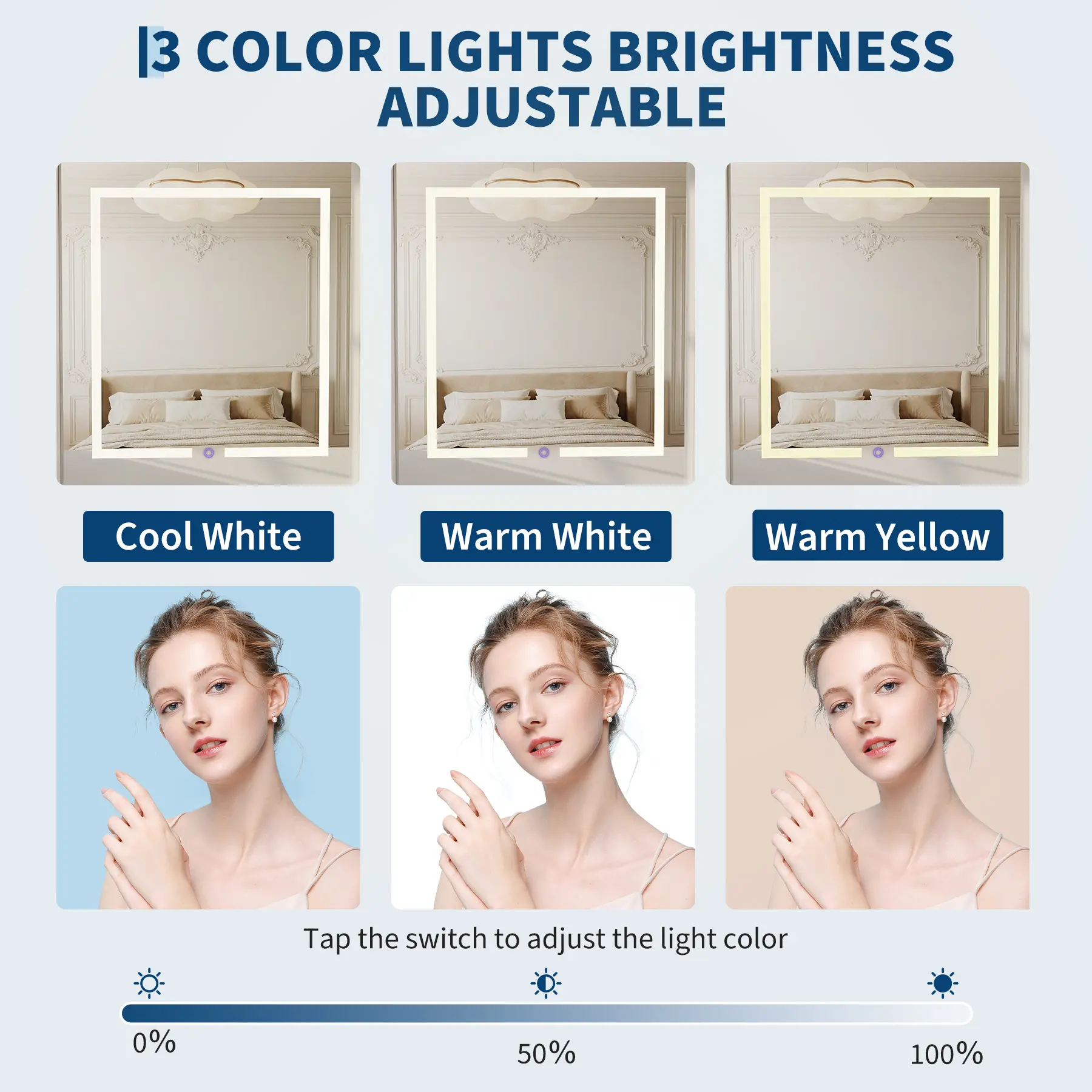 ✅ Smart LED mirror – 3 colors + dimmable