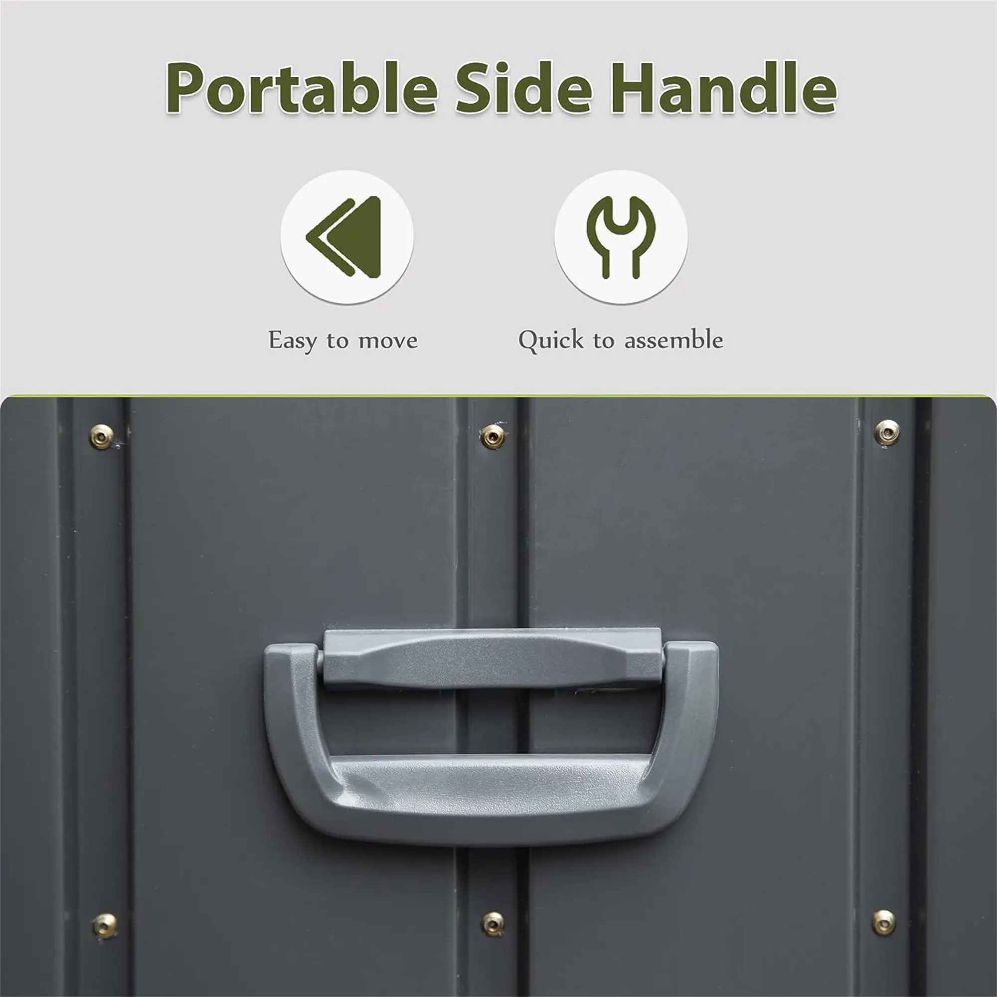 The lid includes lock-holes for a padlock (sold separately). Built-in side handles and smooth-rolling wheels allow effortless repositioning. No heavy lifting required. Move it wherever you need it.