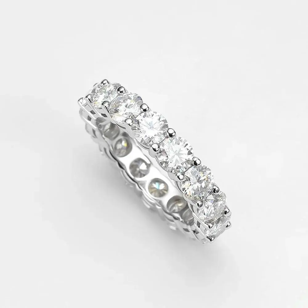 FEOBUR 5mm D Color Moissanite Ring with Certificate Women S925 Sterling Silver Full Diamond Wedding Eternity Band Jewelry Gift