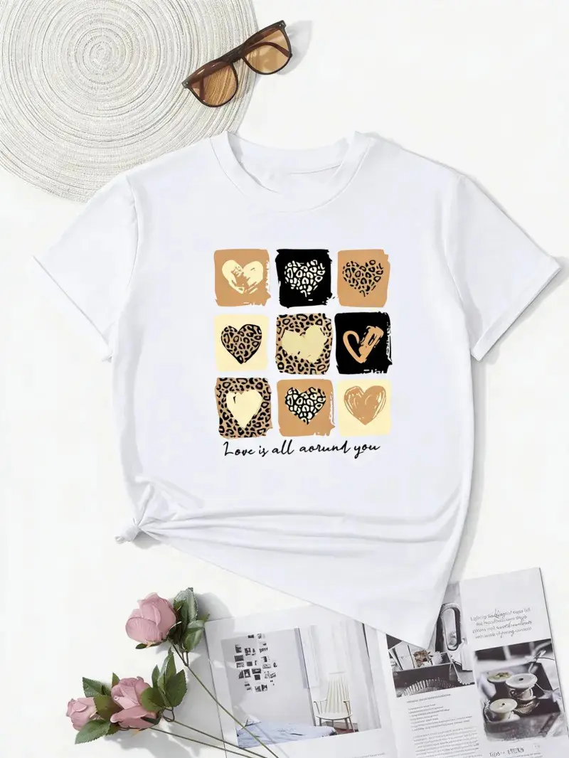 5. T-shirt Love Heart Trend Babylook 100% Cotton Animal Print