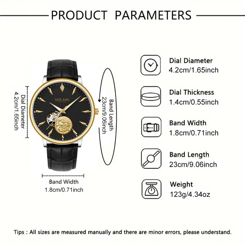 This watch makes an excellent gift. Its distinctive design and automatic movement cater to thoughtful gifting. Enjoy the fusion of fashion and practicality with the SAILANG Men's Mechanical Watch.