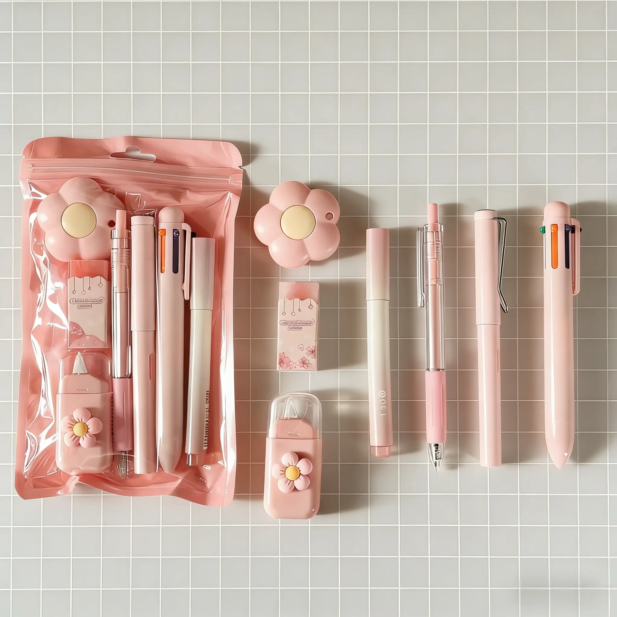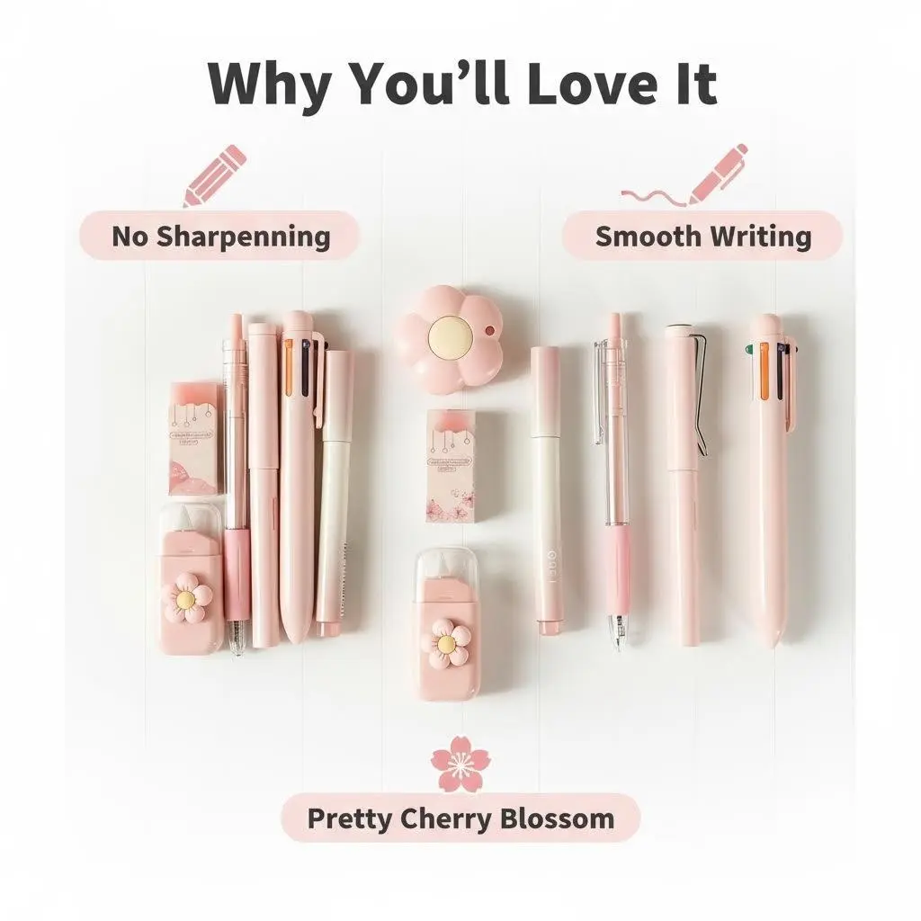 Cute Design: This stationery set features a delicate flower and gradient color design, perfect for students with a kawaii aesthetic and functional writing tools to add fun to your children's back to school.