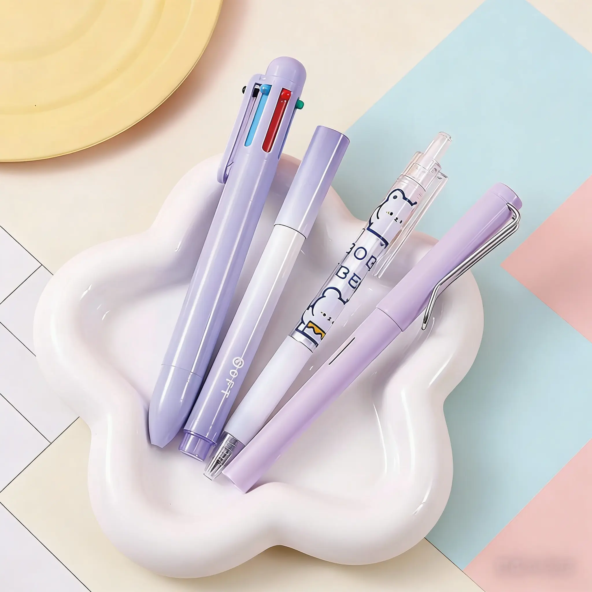 Comprehensive stationery set: It is a complete kawaii Korean set, including gel pen, highlighter pen, ballpoint pen, eternal pencil, correction tape, eraser, and utility knife.