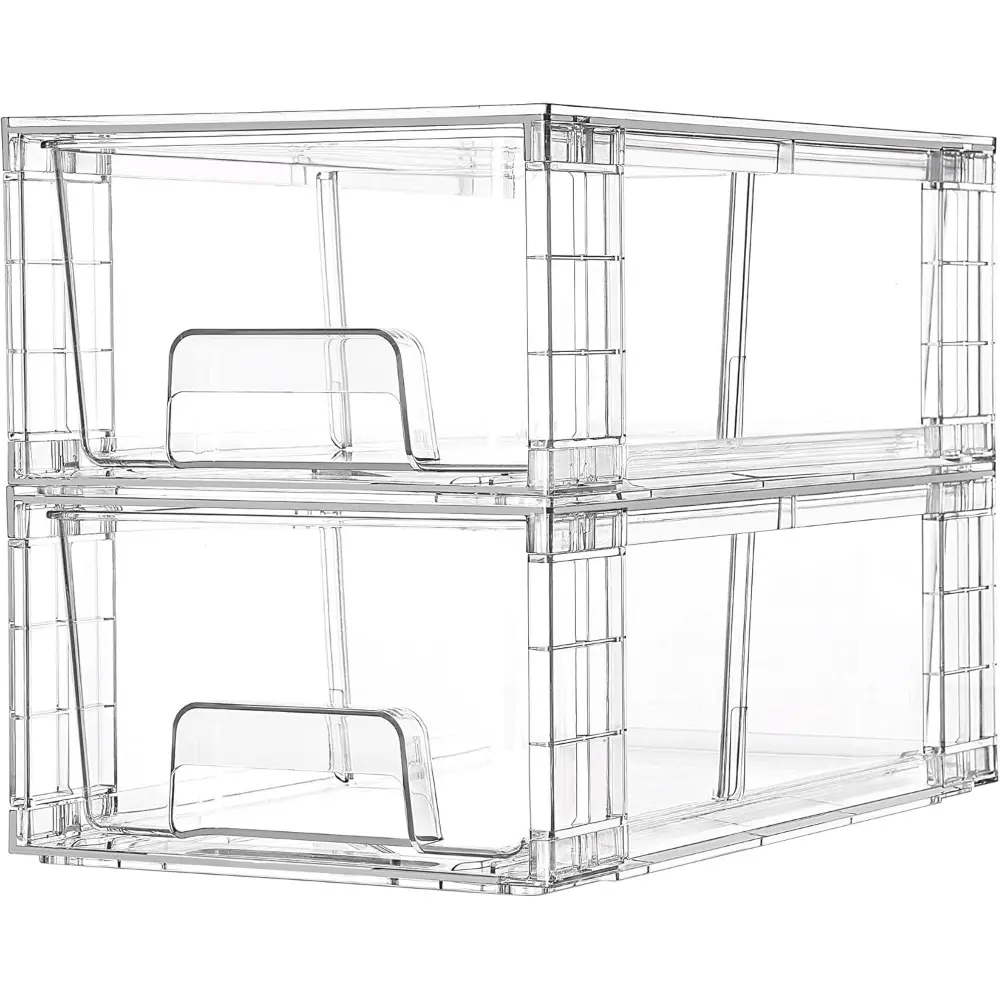 Stackable Design--- Come with 4 drawer storage organizers, each organizer measures 12"D x 7.5"W x 4.4"H. Vertical storage will save a lot of space.You can put other objects on top of acrylic bins to make your countertop and cabinet space more tidy.It can also be stacked with Vtopmart storage drawers of other sizes