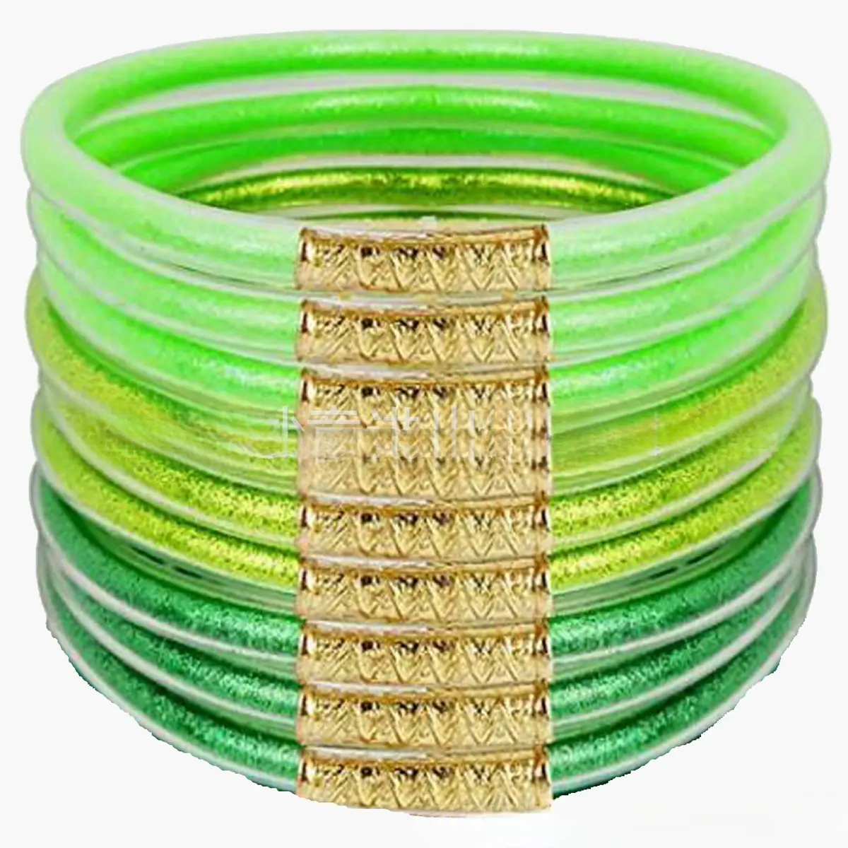Layering siicone bracelets women have gorgeous and multi colors for you choose, meet yourneed to match different outfitYou can wear thismultilayered glitter jelly bangles on different occasions, no matter shopping, working, wedding, holiday, party or dating, the glitter filled jellybangle bracelets will catch most of eyes, you will get much compliments.