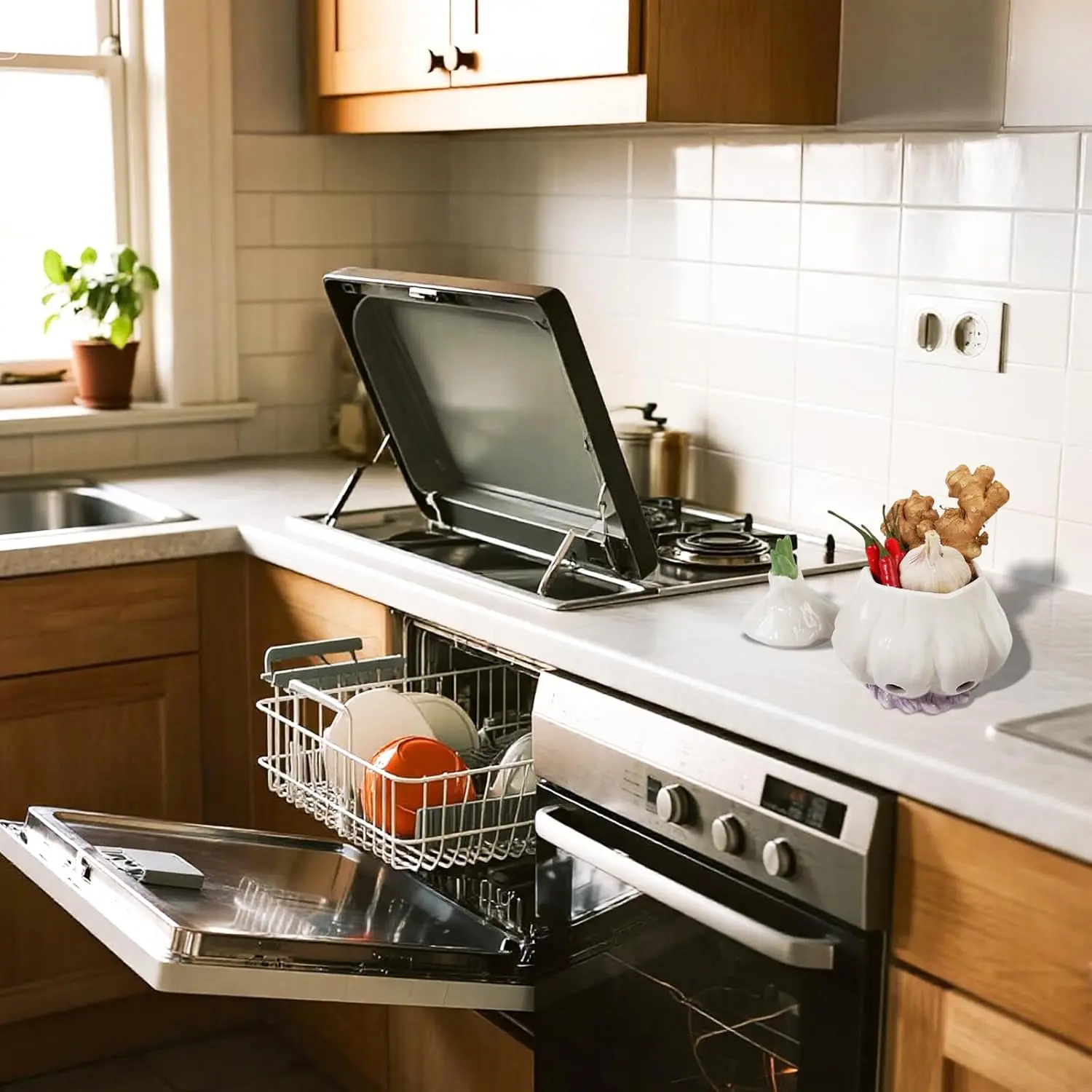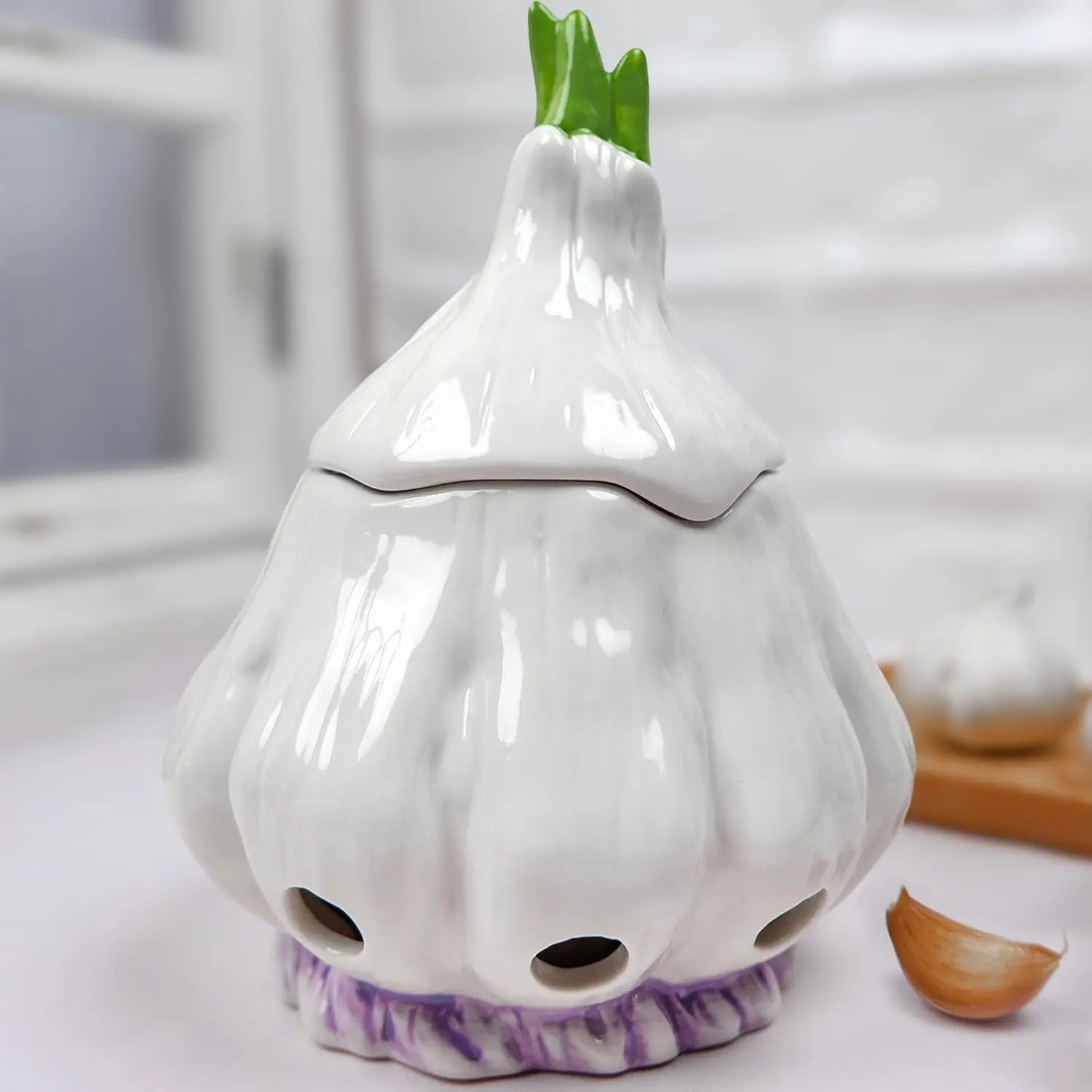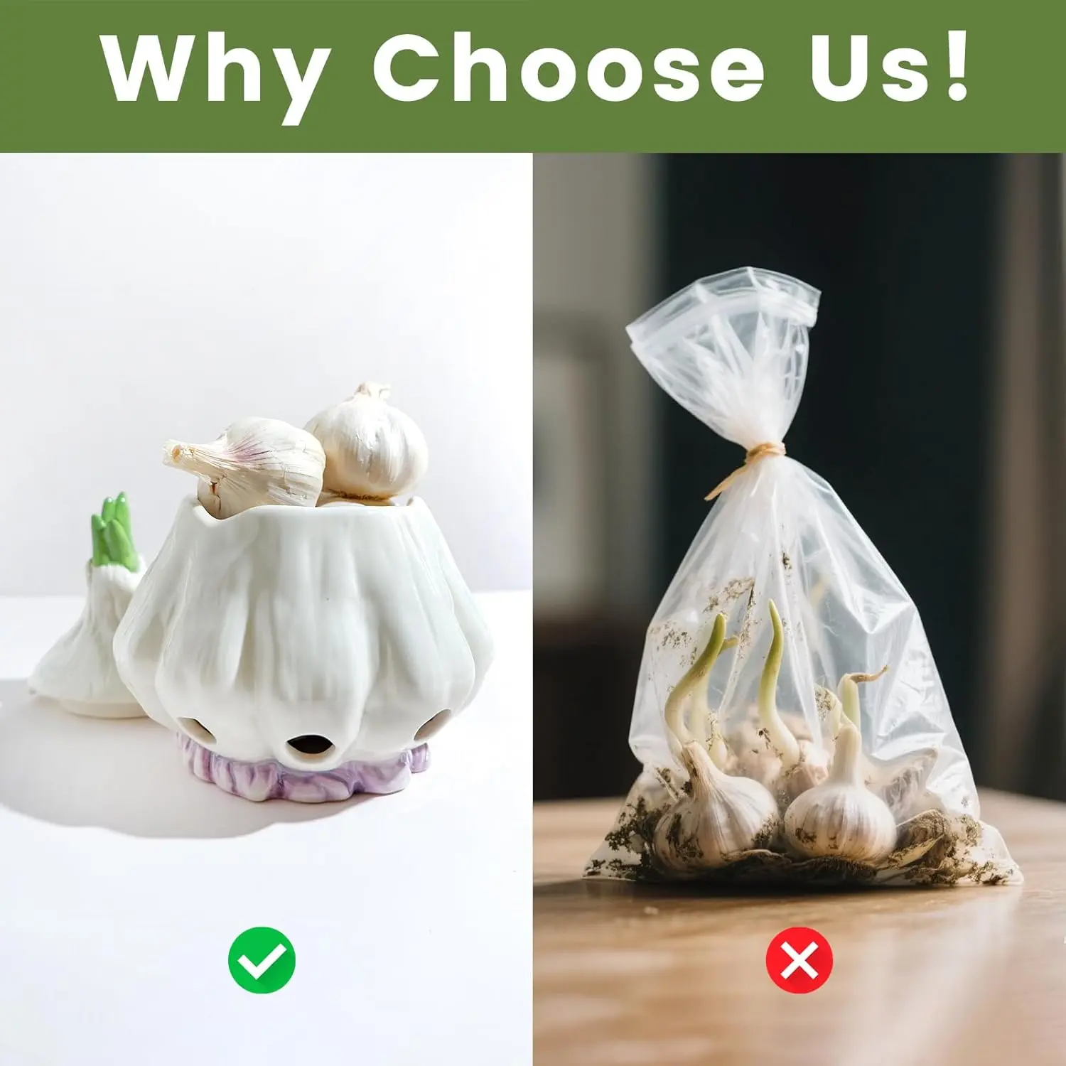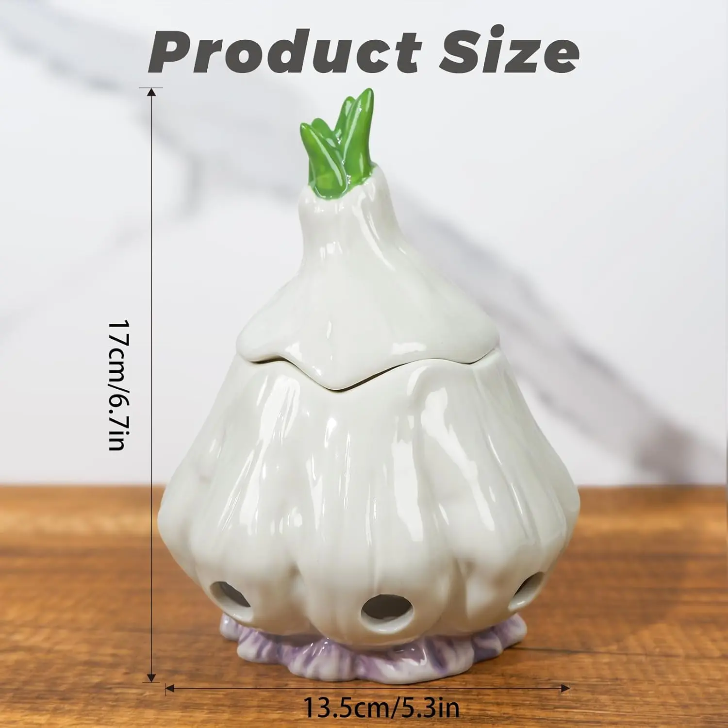 Large Garlic Storage with Lid | 6.7x5.3Inch Modern Ceramic Garlic Keeper Container | Stylish and Breathable Design for Freshness Preservation | Perfect for Kitchen Countertop and Refrigerator