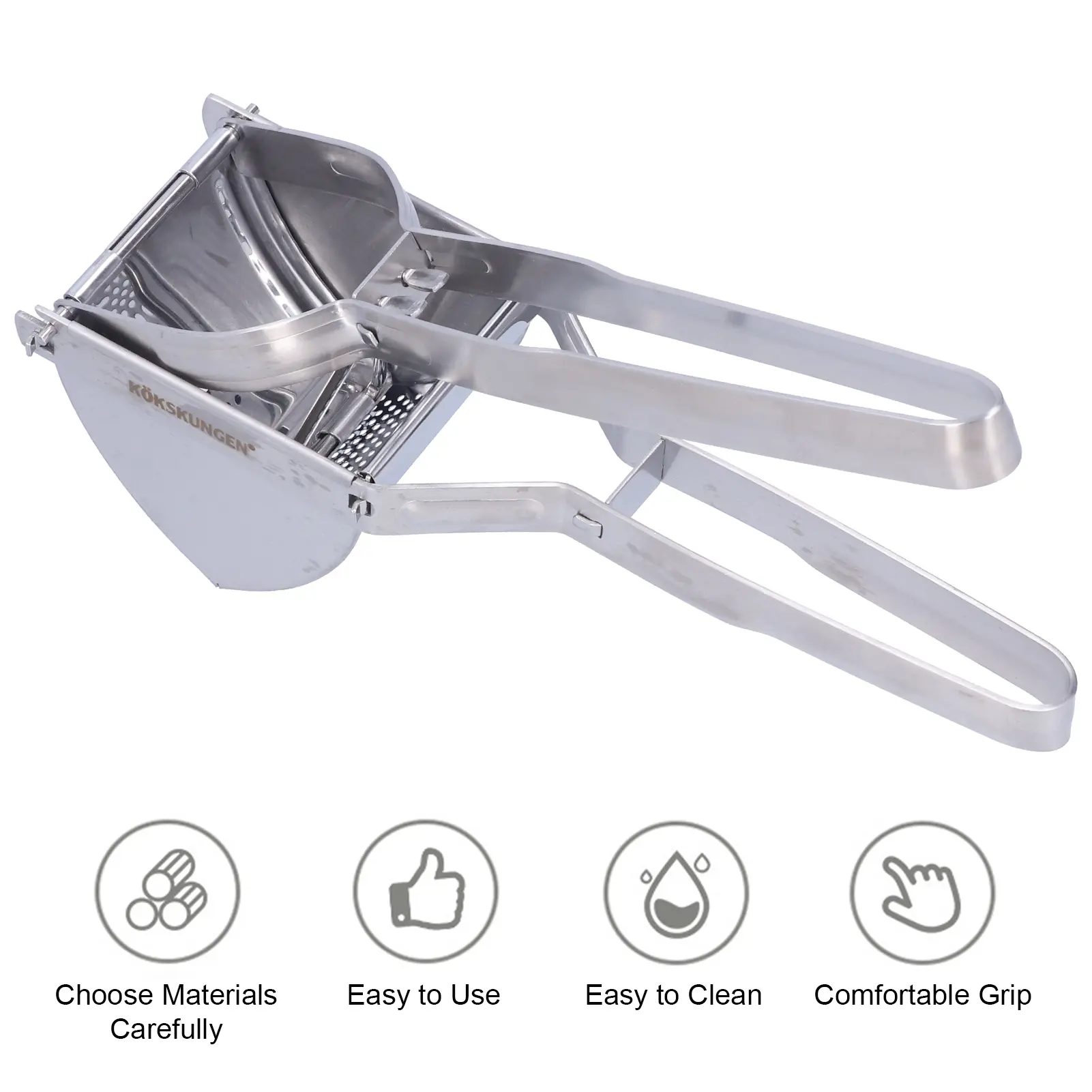 2. Potatoe ricer press is easy to clean, and the pull tab is detachable for easy disassembly and cleaning.