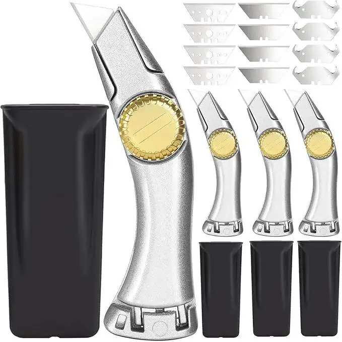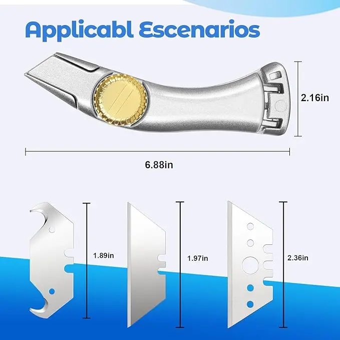 This set includes 4 fixed blade roofing utility knives, perfect for roofer tasks.It features 3 blade types, suitable for carpet cutting, drywall, vinyl, and metal roofing.Ideal for both indoor and outdoor use.🏠✨