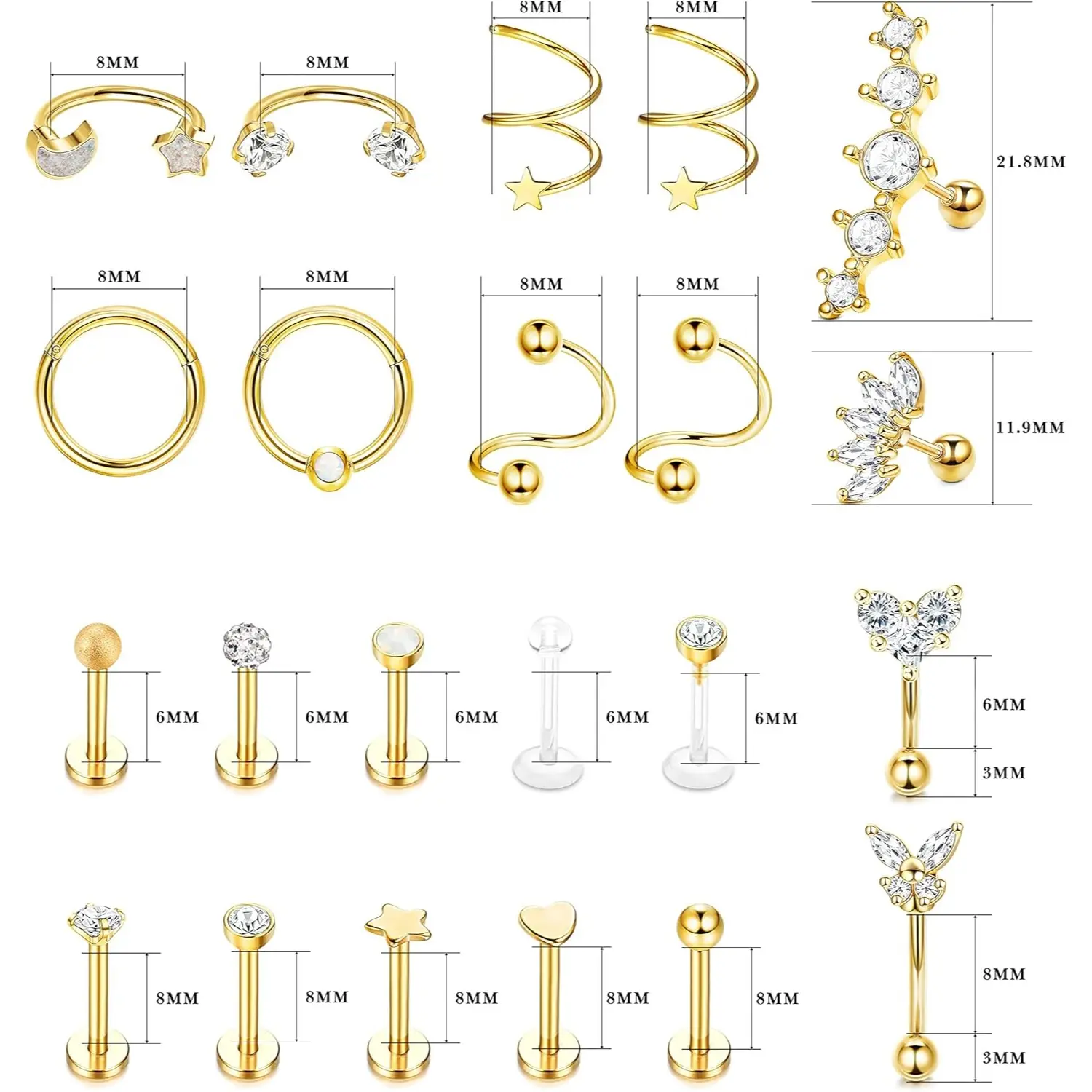 ·Mix & Match Heaven: Whether you’re styling your Helix, Tragus, Conch, Rook, or Lip, this set has a piece for every spot.