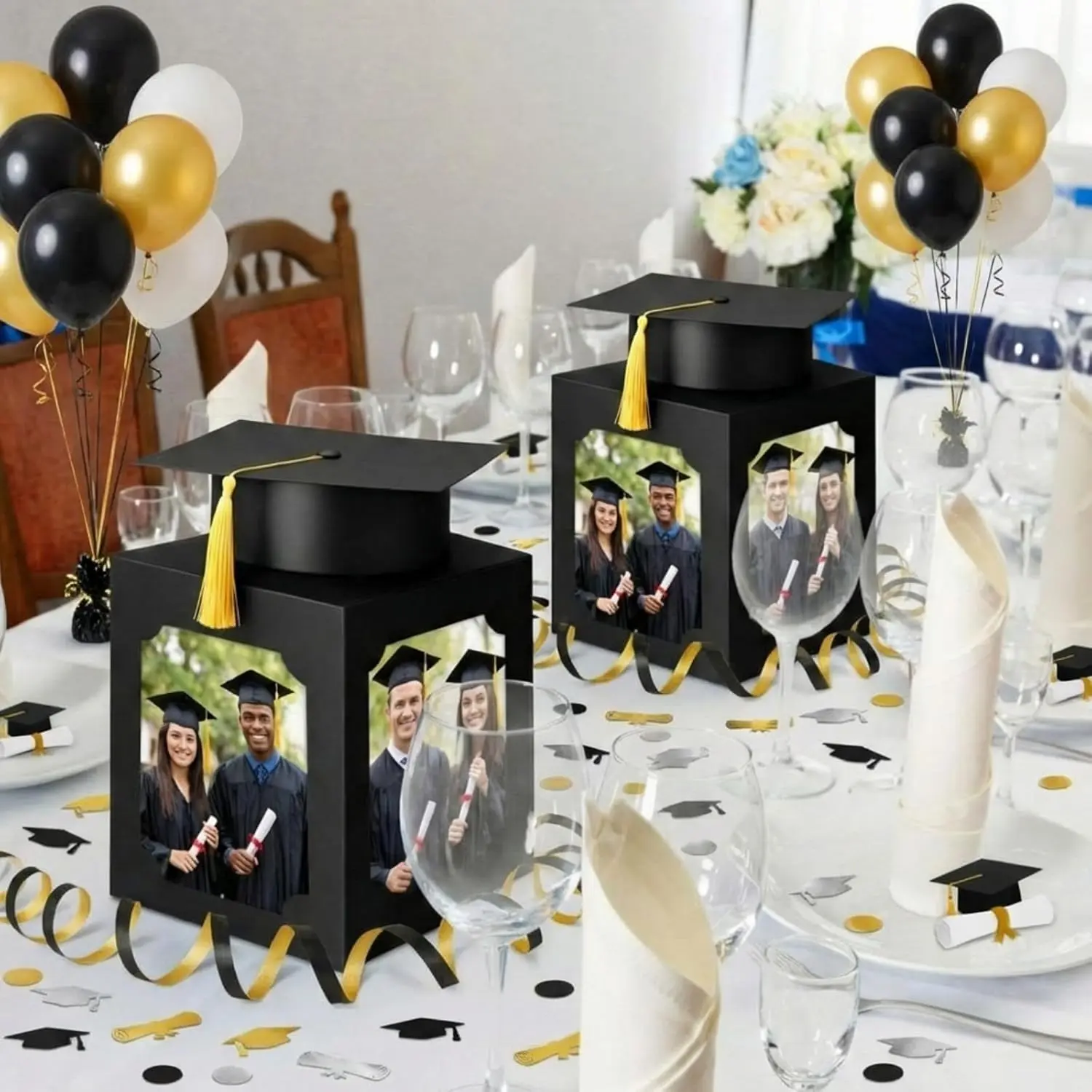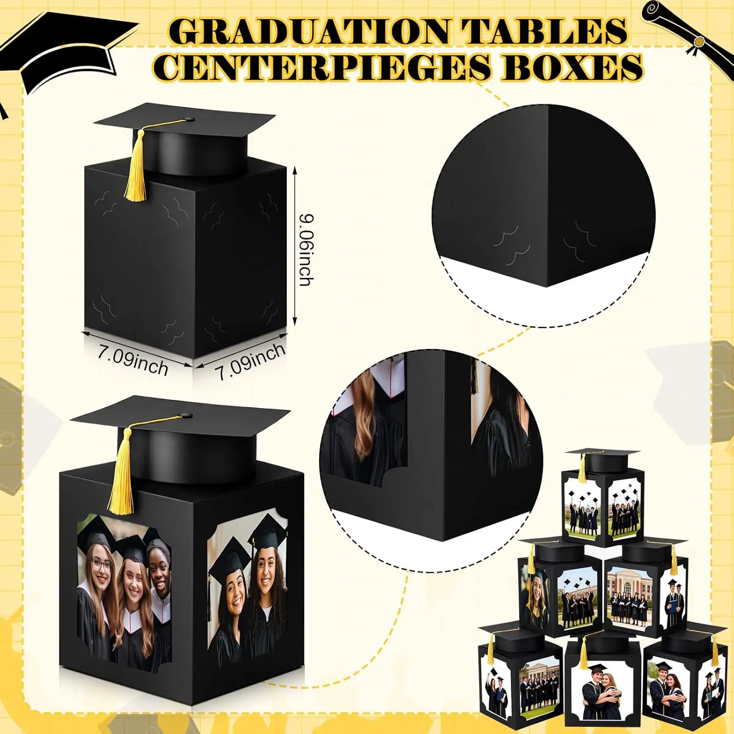 6 Pcs Black Graduation Table Centerpieces Box with Hat, 6/7 Inch Picture Box Centerpieces for Table Photo Props Frame Congrats Grad Decorations for Graduation Wedding