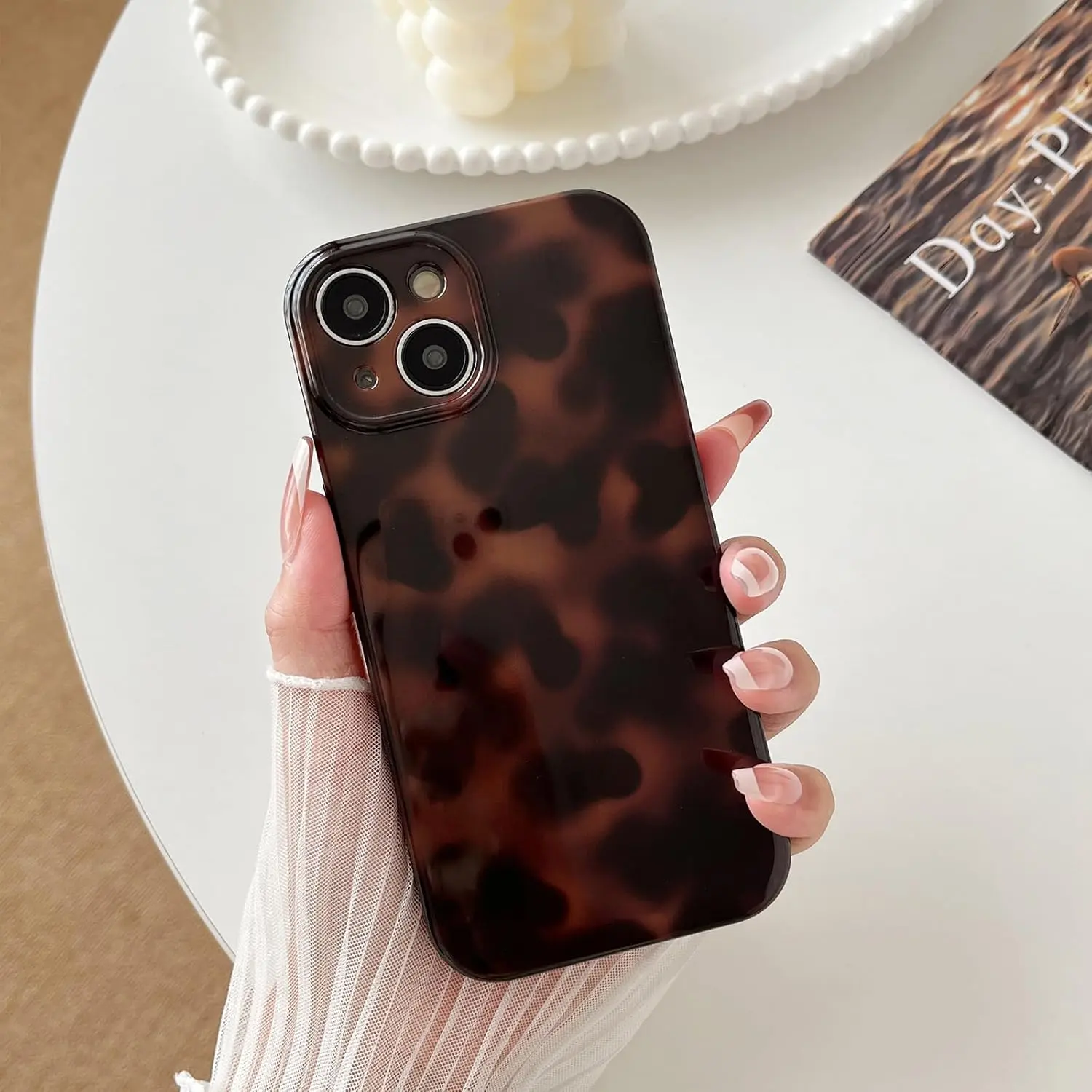 Huahuacase Compatible with for iPhone 15 Case, Tortoise Shell Chic Amber Brown Print Leopard, Classic Soft TPU Protective Shockproof Case for iPhone 15 6.1 ''Color2