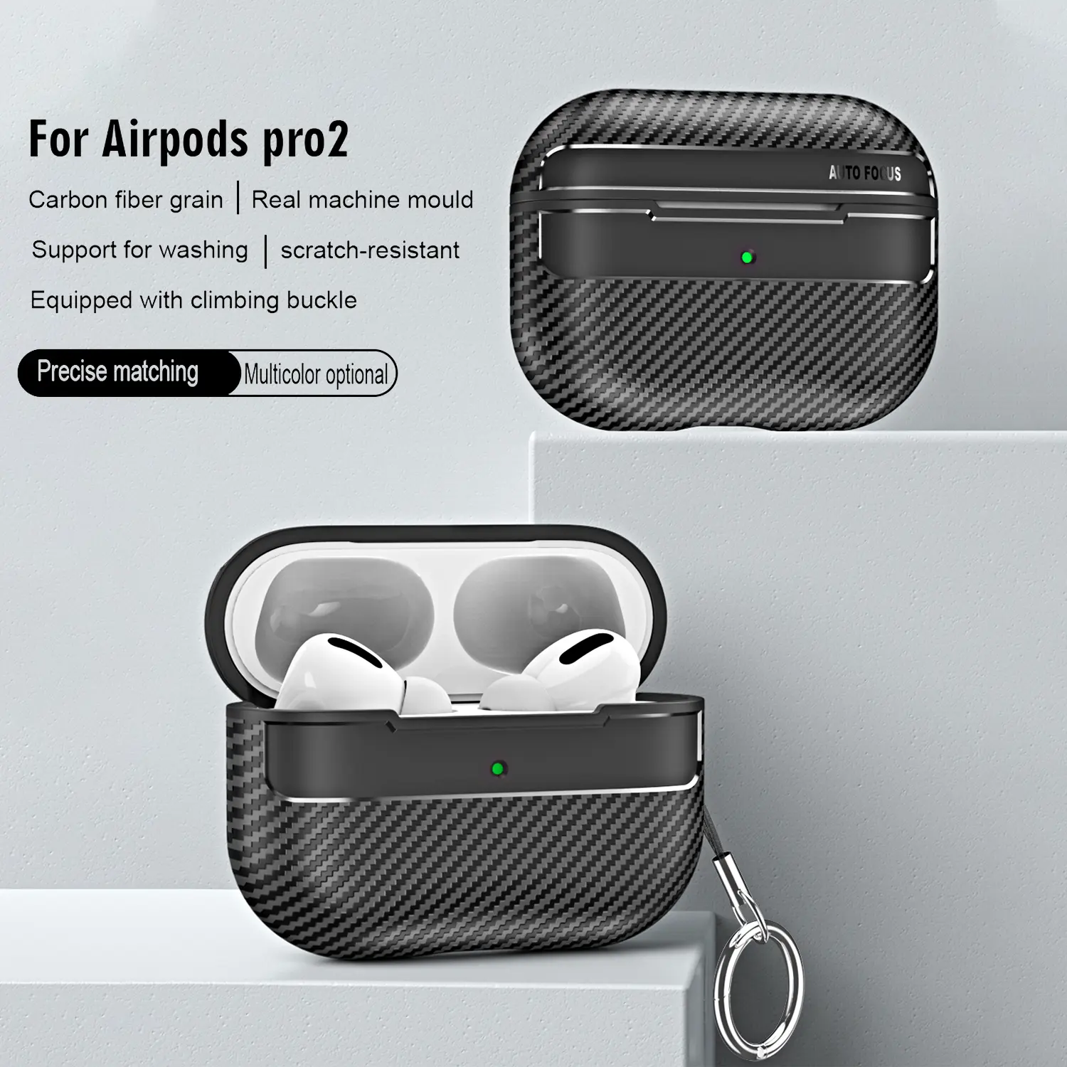 Carbon Fiber Texture Military Shockproof Case for AirPods Pro 3/2/1 & AirPods 4/3/2/1 with Carabiner Protective Cover