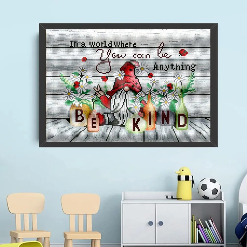 5. Stamped Gnome Cross Stitch Kits for Adults Beginners,Full Range of Cross-Stitch Stamped Kits Needlecrafts for Home Wall Decor Patterns 11.8x15.7inch