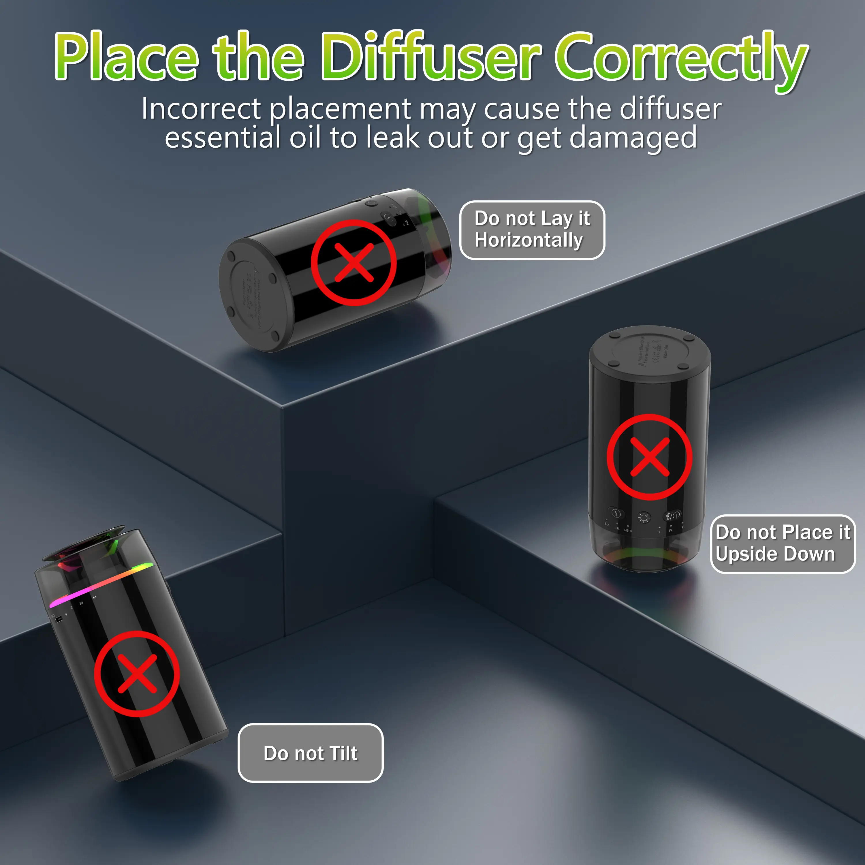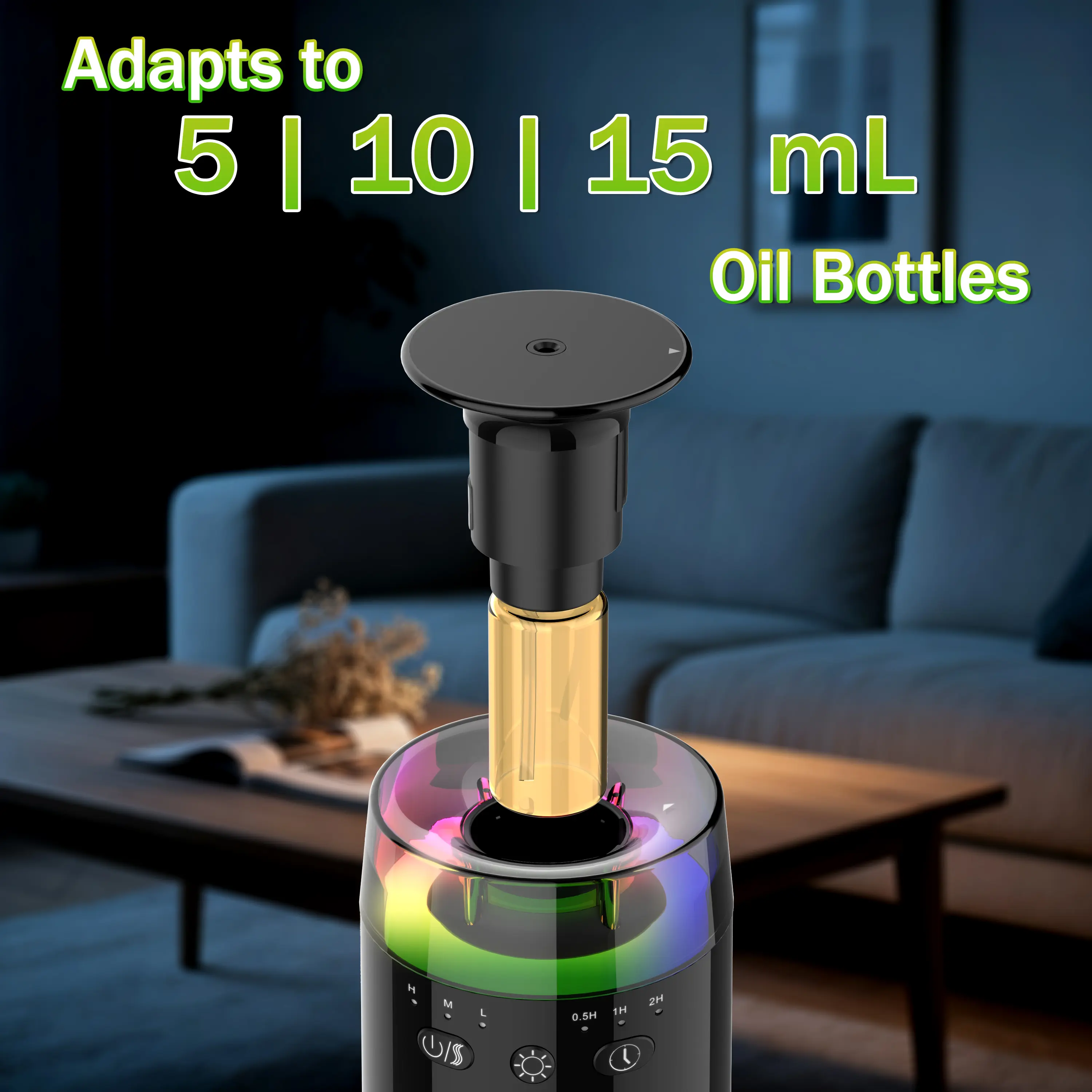 Universal Bottle Compatibility: The diffuser for home simply used on any standard 5mL to 15mL essential oil bottle directly onto the nozzle, or use the included bottle for decanted oils.