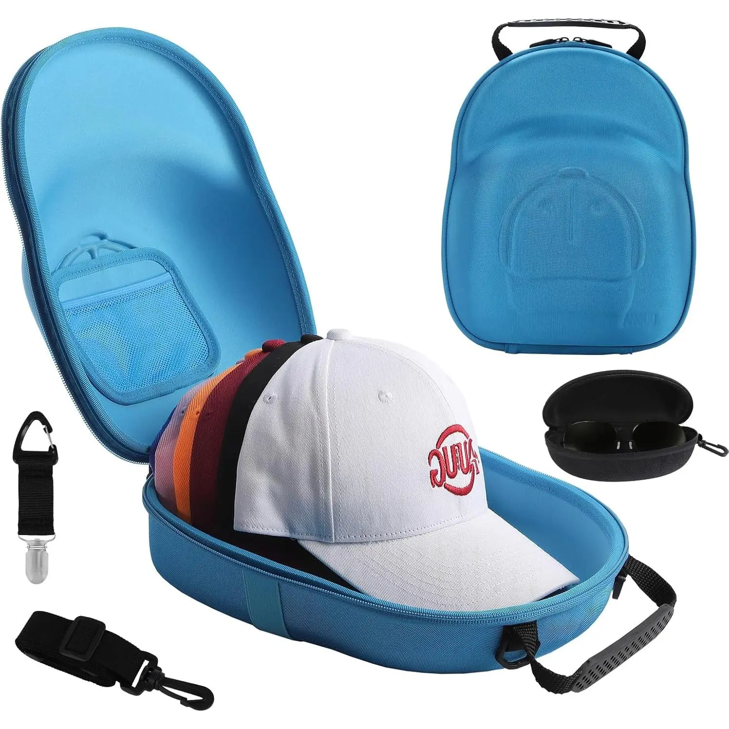 The hat case for baseball caps comes with a sports sunglasses case, perfect for storing valuables.It also serves as a cap holder, keeping your baseball cap protected from being crushed or misshapen