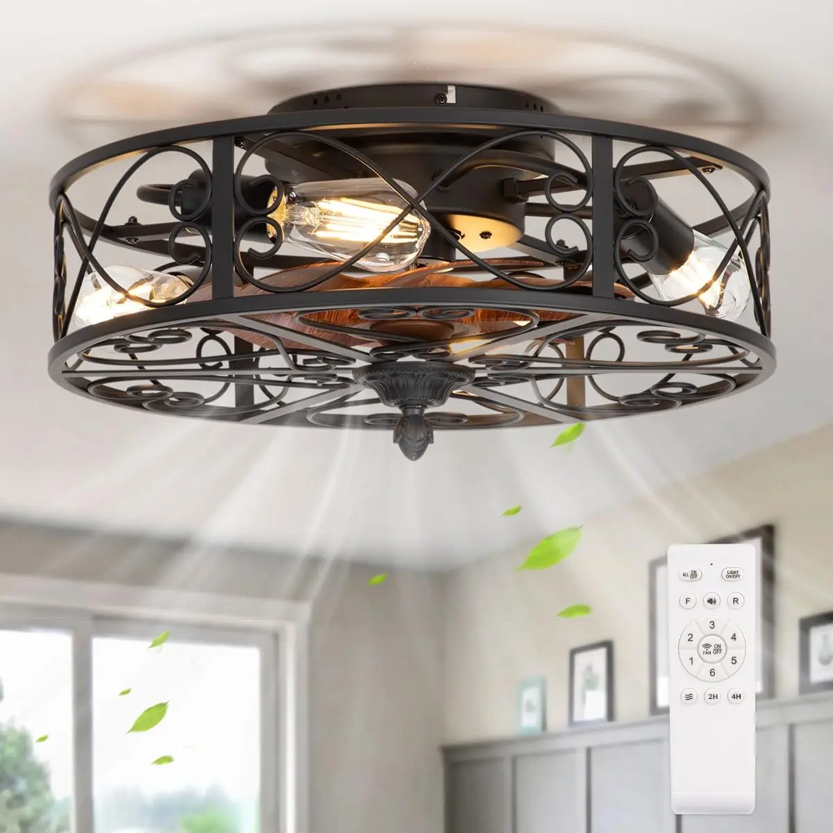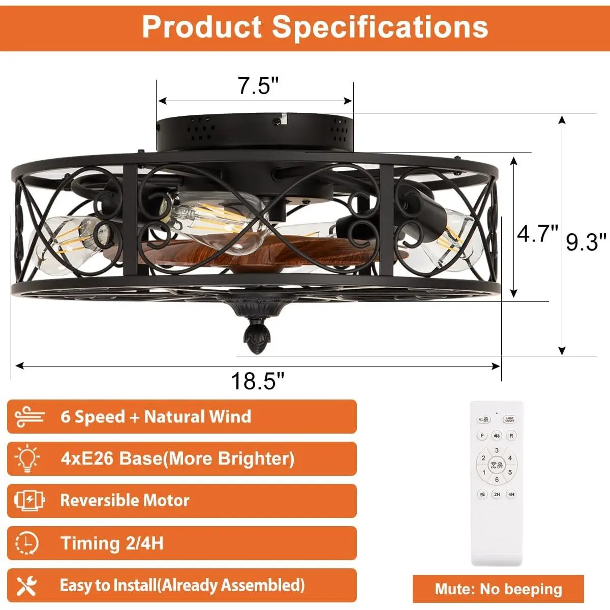 💪[ and Ultra-quiet ]The 18.5 inch caged ceiling fans with light built-in a "upgraded DC ", wind speed and low noise, no beeping, every low profile ceiling fan with light is tested for quality and noise test before it leaves the factory, ensure noise levels below 30 decibels and durability