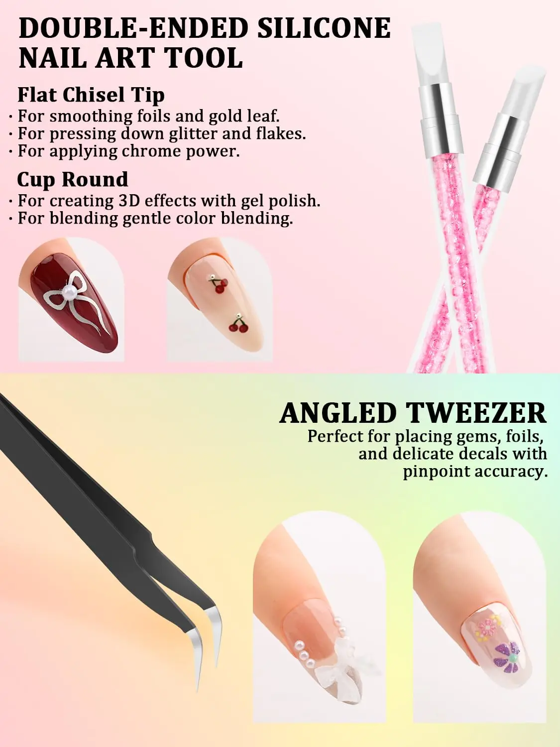 ·Durable & Easy to Clean – Long-Lasting Performance: High-quality synthetic bristles with rust-proof ferrules ensure precise application, while the ergonomic handles provide control. The metal angled tweezer securely places charms and gems and the dual-tip silicone pen resists stains for long-term use.