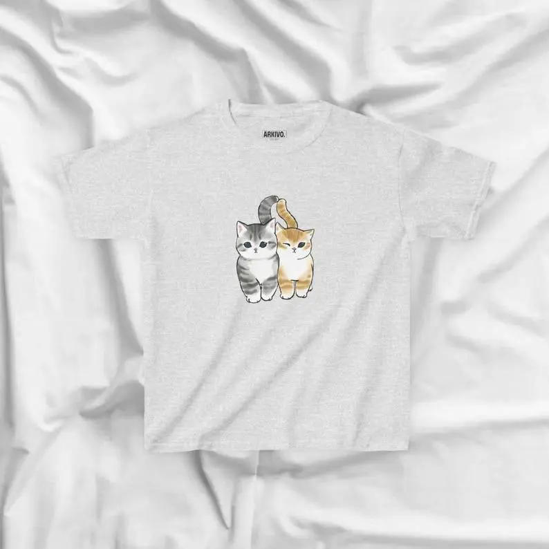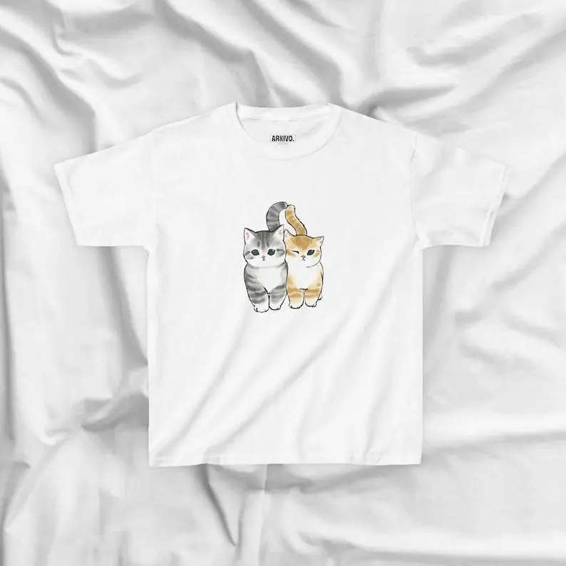 Mofusand Cats Baby Tee – Y2K Cute Aesthetic Shirt, Bunny & Cat Graphic, Coquette Style Baby Tee