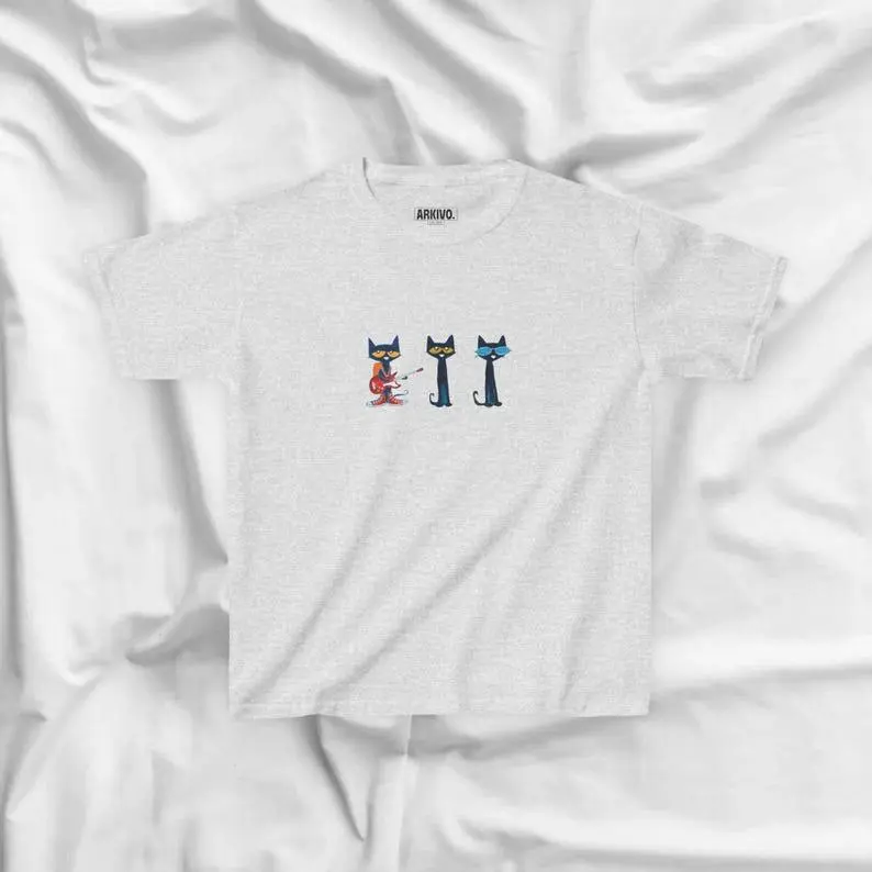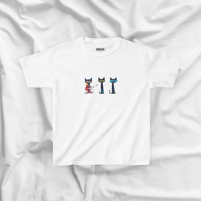 Y2K Pete Cat Baby Tee – 90s Graphic Shirt, Coquette Vintage Design, Trendy Y2K Baby Tee Crop