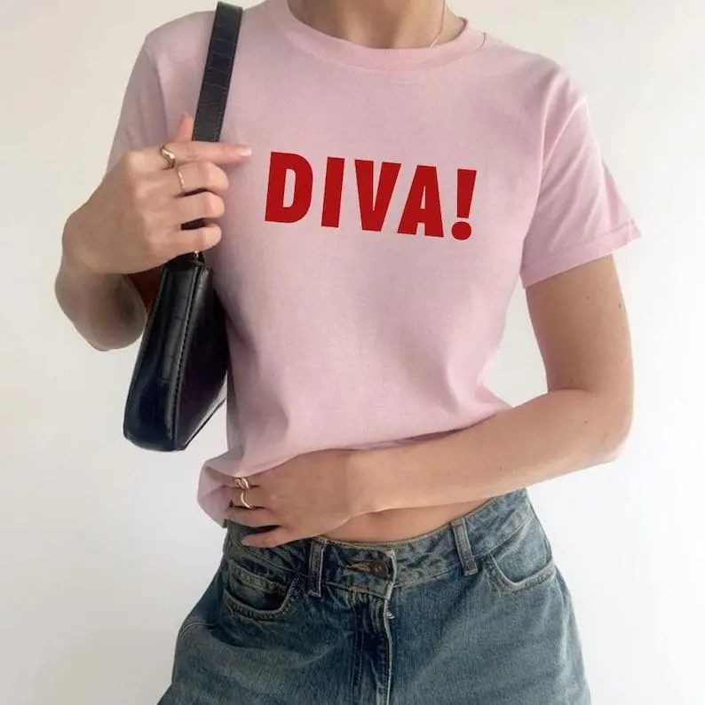 DIVA! Role Model Baby Tee – 90s Concert Graphic Shirt, Y2K Vibe for Bold Women
