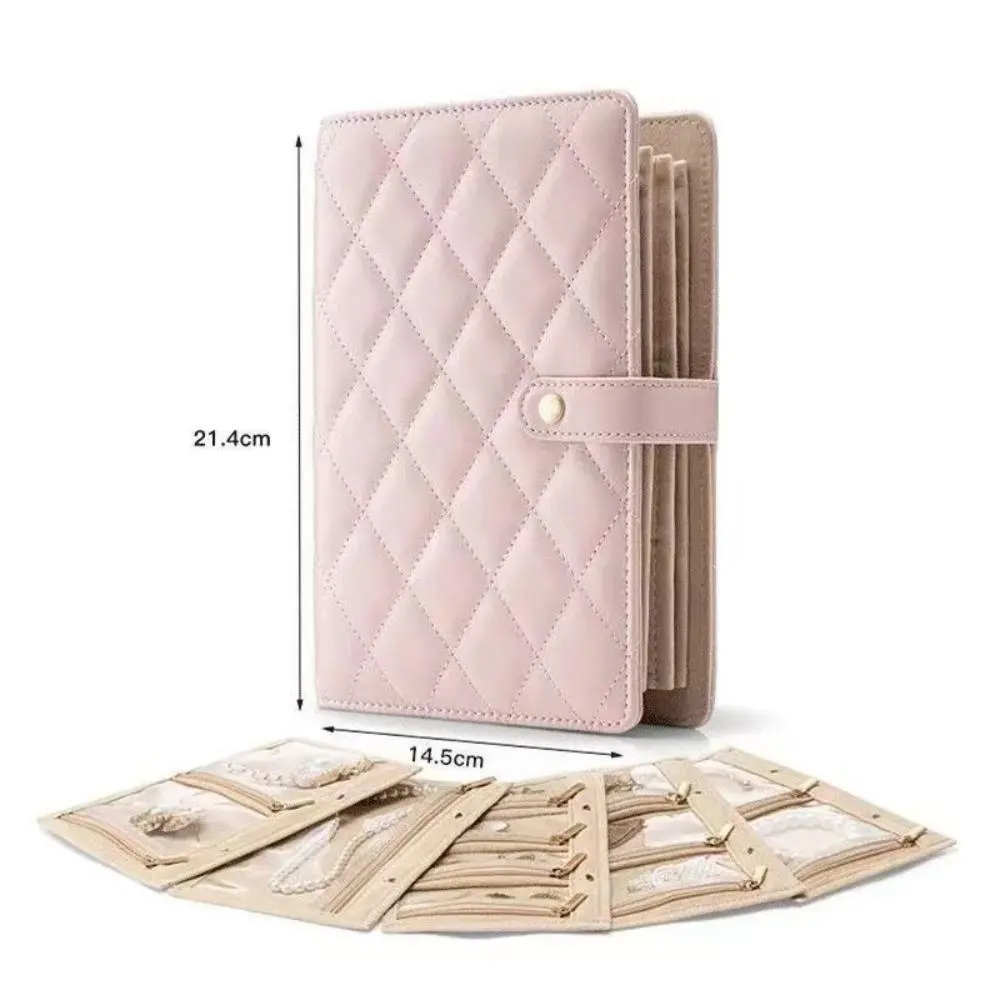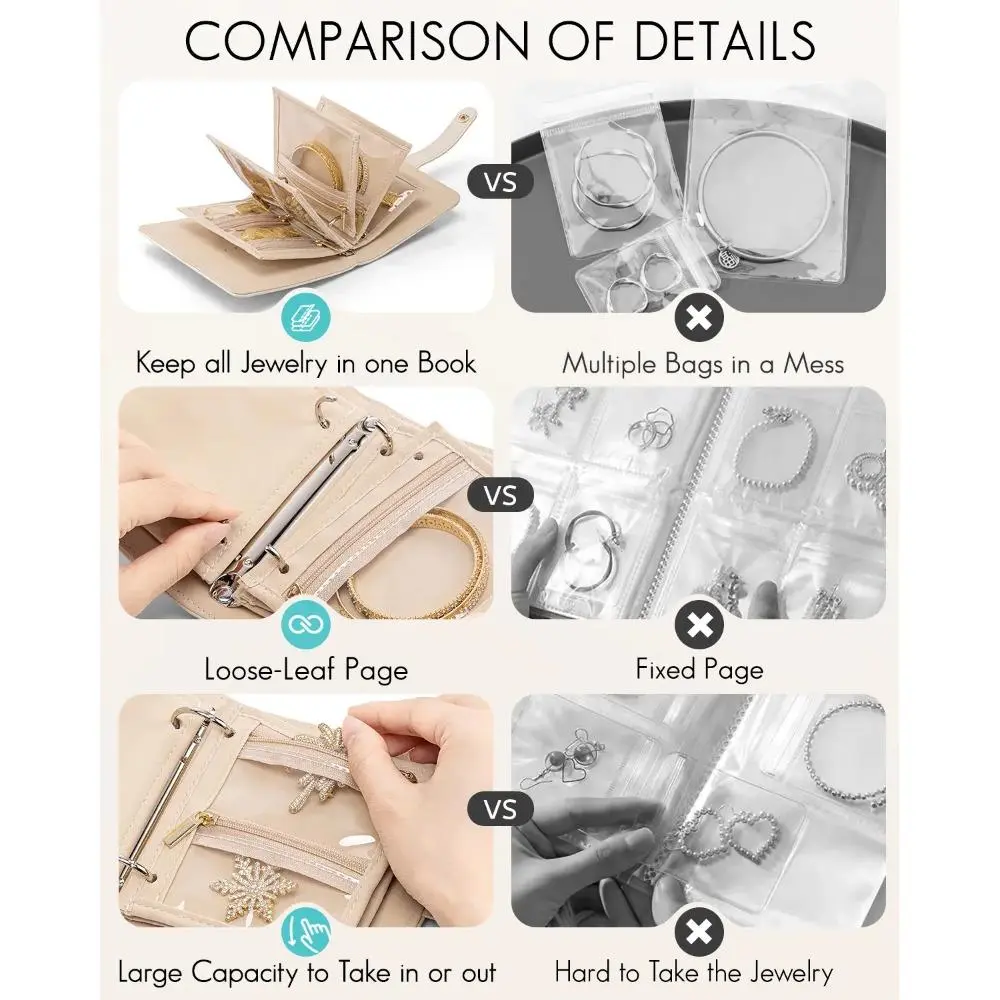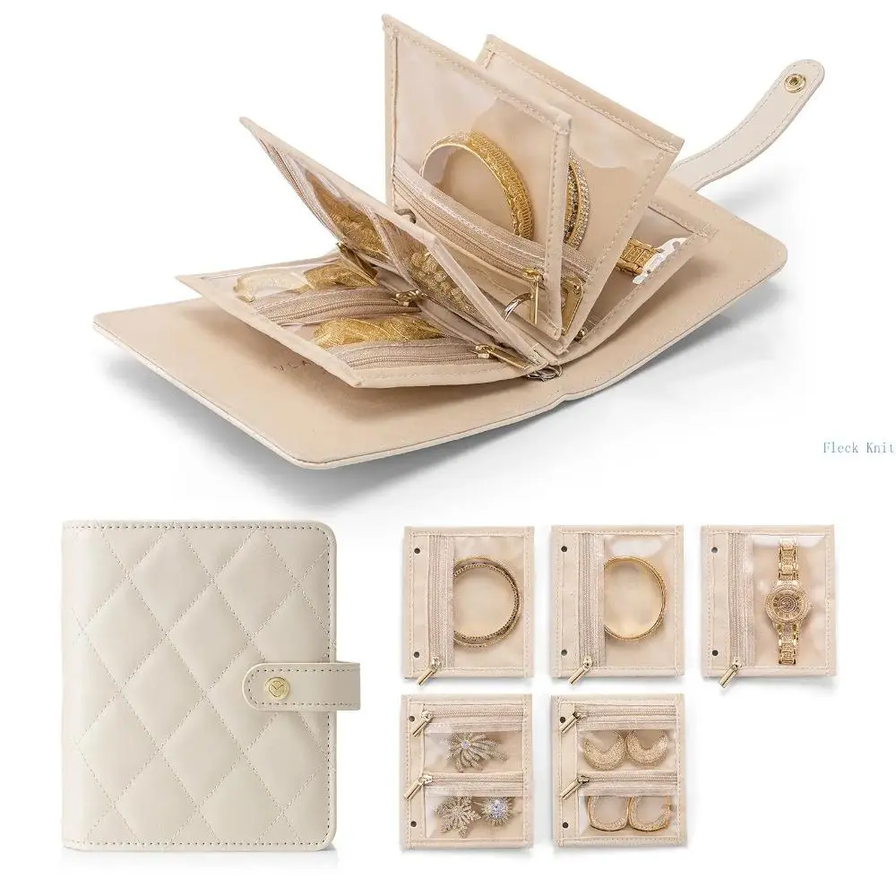 Mini Travel Jewelry Organizer Case | Jewelry Storage Book with Clear Zipper Velvet Pouches | Portable Earring, Ring & Necklace Holder | Ideal Wedding & Summer Gift