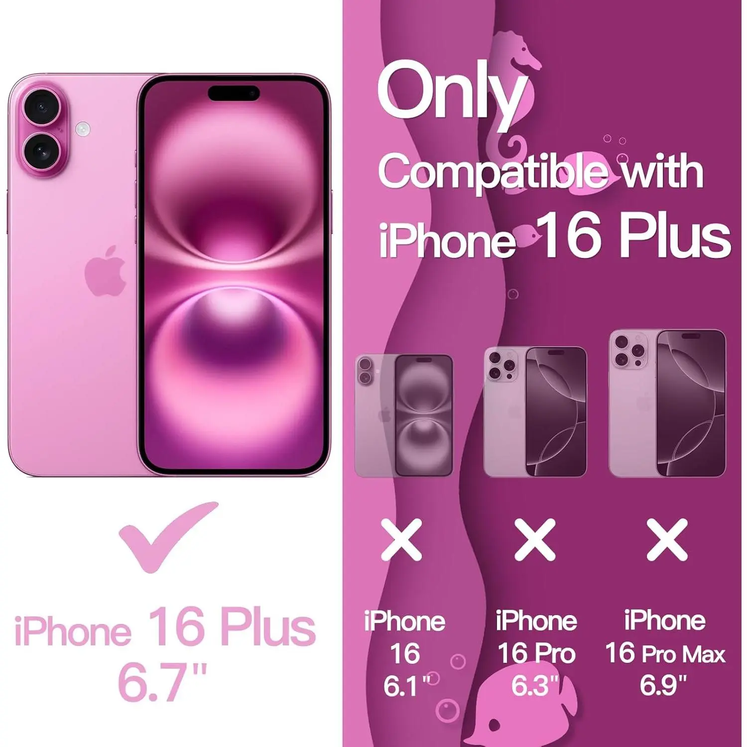 JETech Wavy Case for iPhone 16 Plus 6.7-Inch, Cute Wave Frame Curly Shape Shockproof Phone Cover for Women and Girls, Clear Hard PC Back (Pink)
