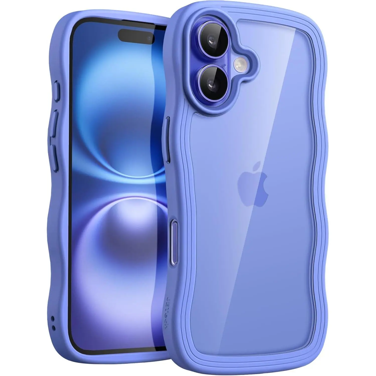JETech Wavy Case for iPhone 16 Plus 6.7-Inch, Cute Wave Frame Curly Shape Shockproof Phone Cover for Women and Girls, Clear Hard PC Back