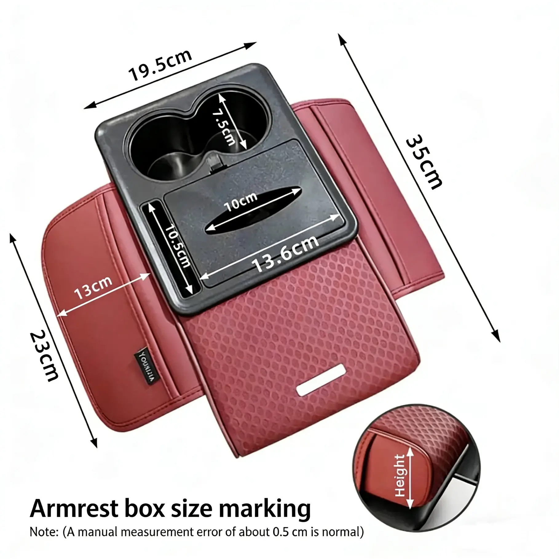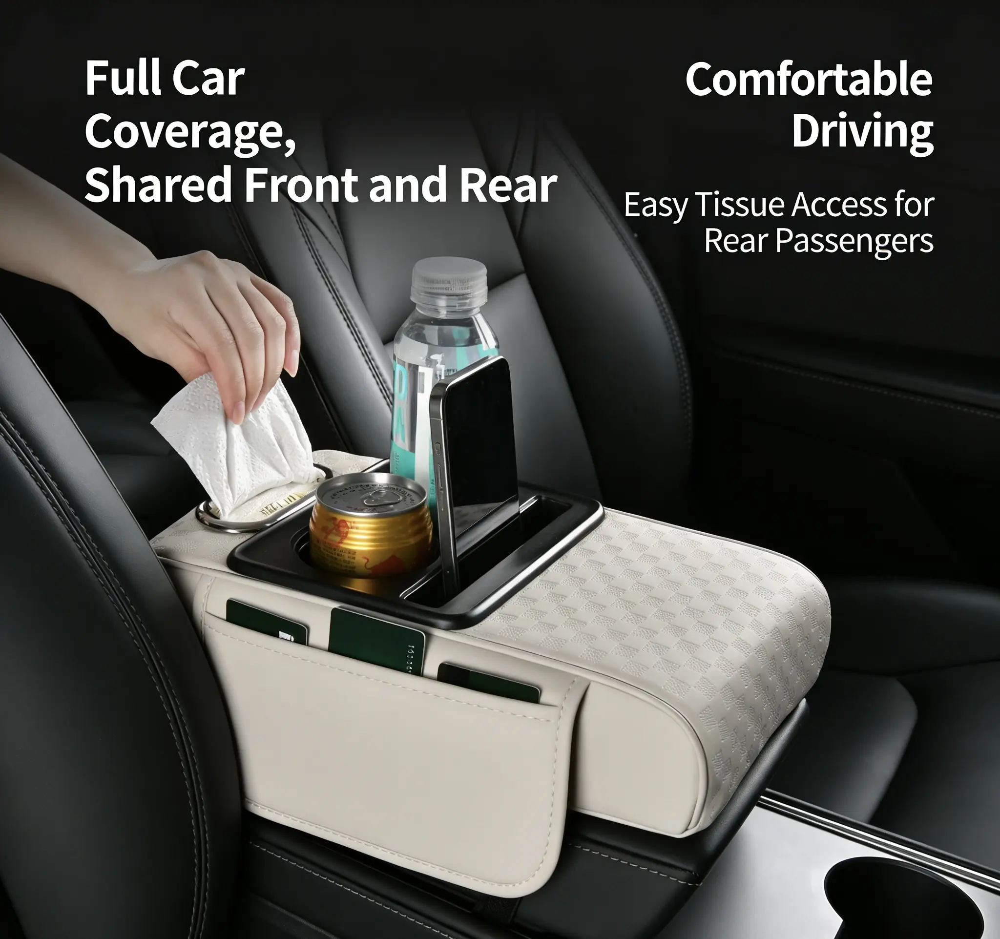 Car Armrest Riser Cushion (Genuine Leather), 2026 New Model (Nappa Leather), In-Car Storage Box, Multifucntional Car Box, Car Tissue Box, Interior Accessories, Car Organizer