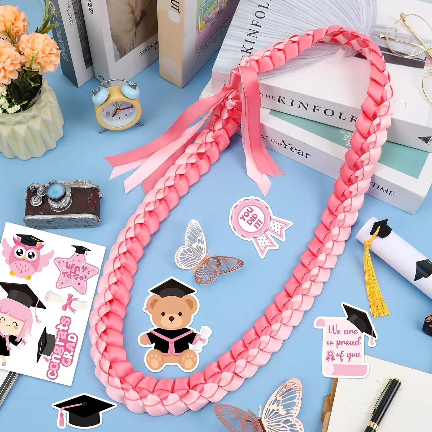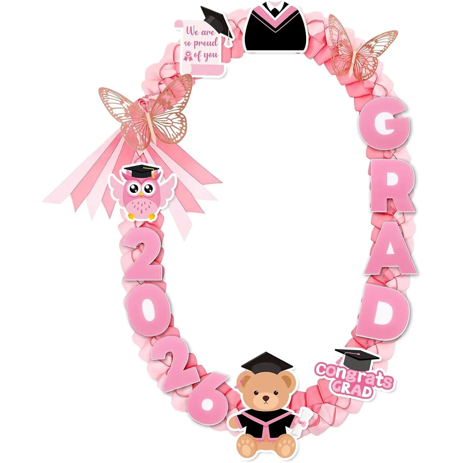 Crafted with care, graduation lei boasts a soft texture and vibrant pink design that complements graduation gowns beautifully.Each pin is intricately detailed, adding a personalized touch to the celebratory ensemble.Whether you're looking for a memorable gift or a standout accessory, leis graduation set delivers both style and sentiment.