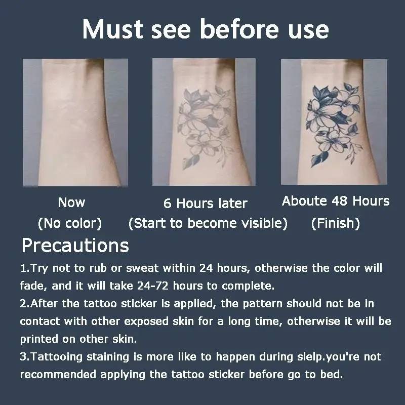 Black Flower Waterproof Temporary Tattoo Sticker Beauty Butterfly Rose for Women 3D Flash Body Arm Art Washable Fake Tattoos