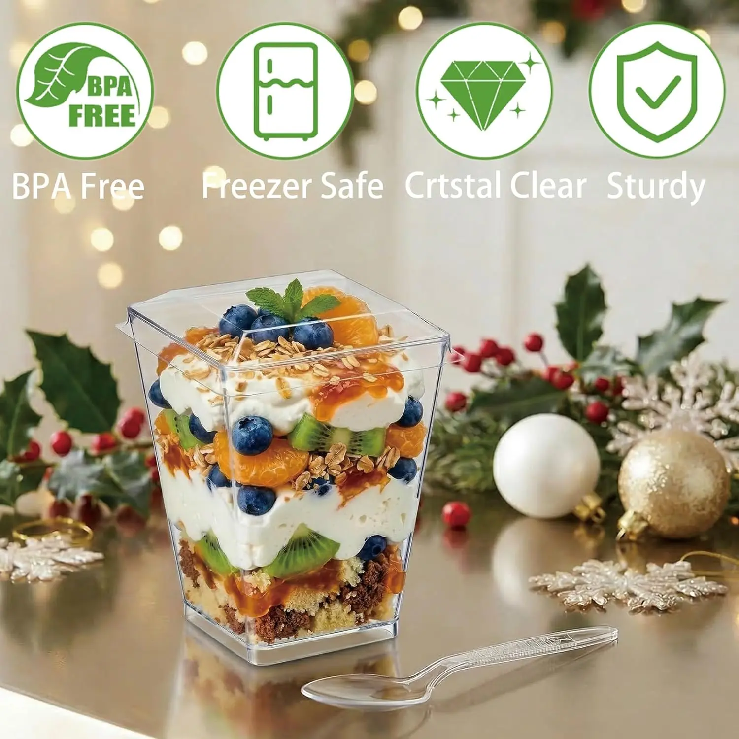 ·Crafted from premium PS plastic, our clear dessert cups are BPA-free, odorless, and safe to freeze.